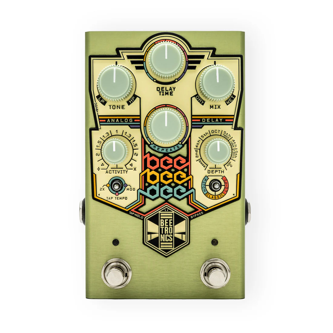 Los chicos de la abejita de Beetronics están sobre todo especializados en pedales de fuzz, que destacan por ofrecer algo extra que se sale de los circuitos tradicionales para estimular la versatilidad y creatividad. Y aunque también tienen algunos efectos de modulación, este nuevo Bee Bee Dee es su estreno con los efectos de delay.