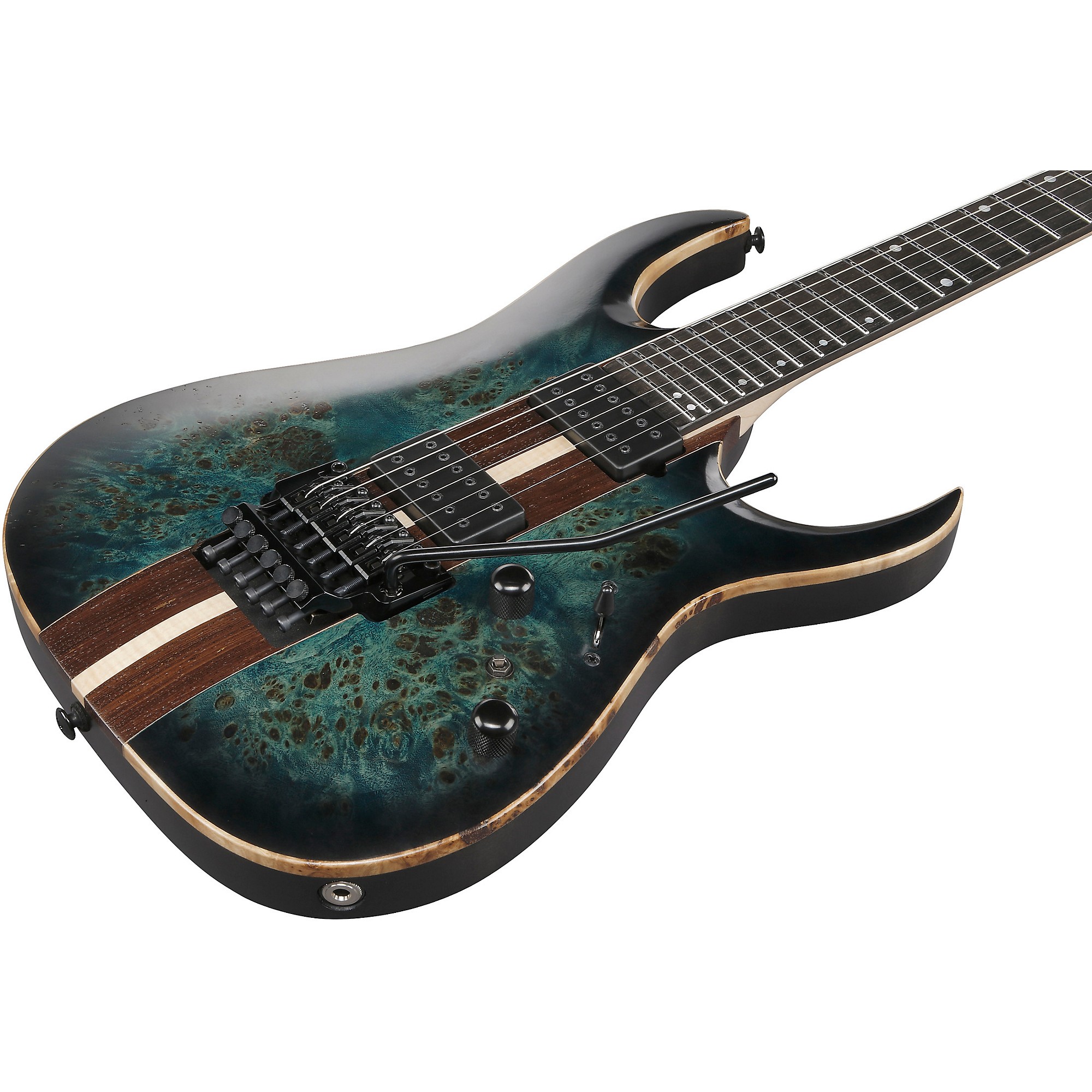El mástil atornillado es el conocido Wizard de 5 piezas de arce y nogal con escala de 25.5", diapason de ébano, 24 trastes Jumbo de acero inoxidable, radio de 15.7", marcadores laterales luminiscentes, y afinadores Gotoh MG-T con bloqueo.