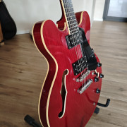 Reissue de finales de los 90. Comprada nueva en tienda, único dueño. En muy buen estado general, sin golpes ni marcas a destacar. Electrónica repasada sin ruidos. Ha sido poco utilizada y los trastes están al 90% Al ser hueca pesa poco, sobre 2,8kg ...350 €Jordi PTarragonahace 13 horas