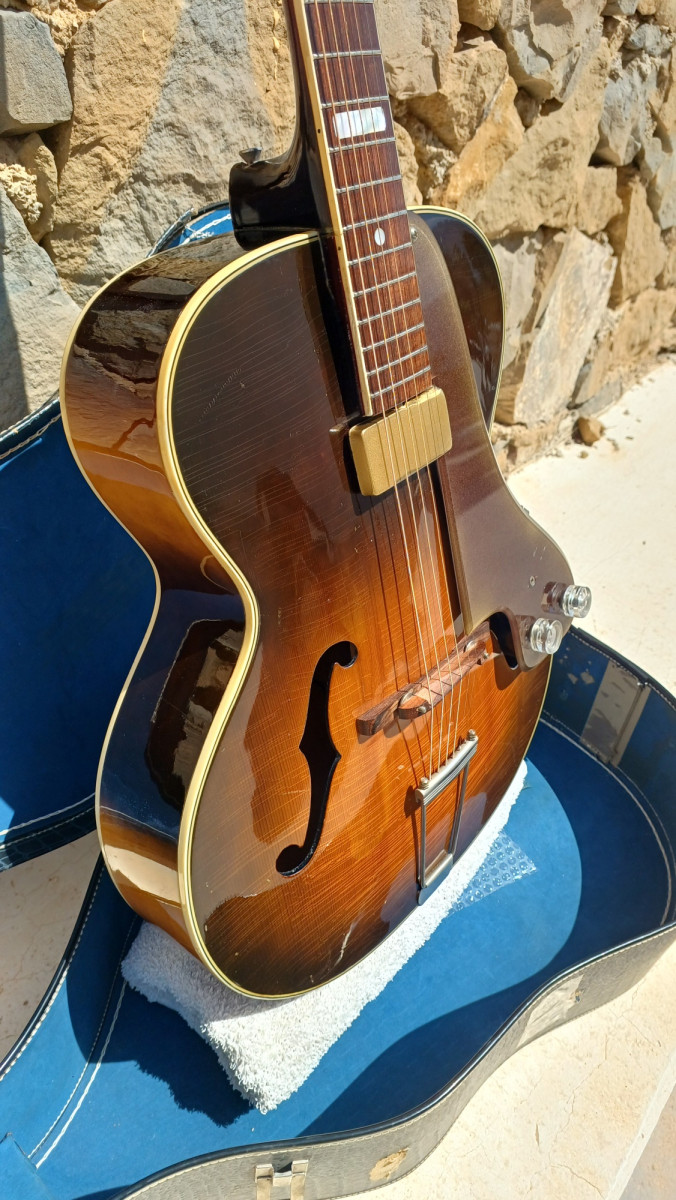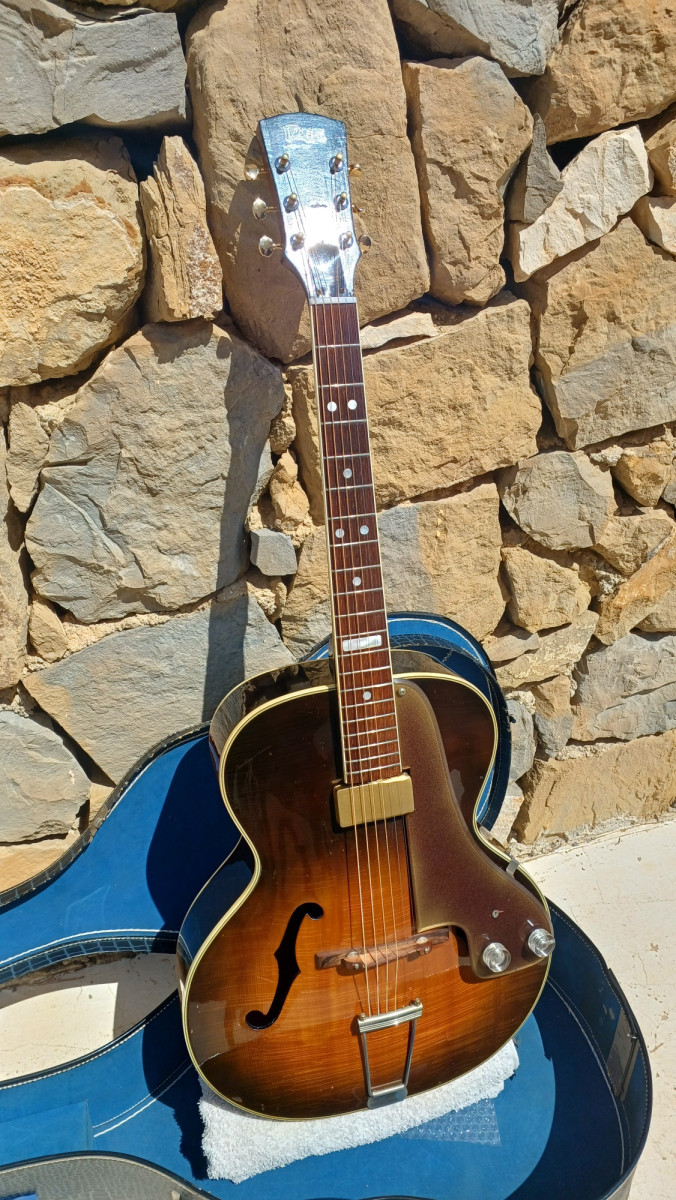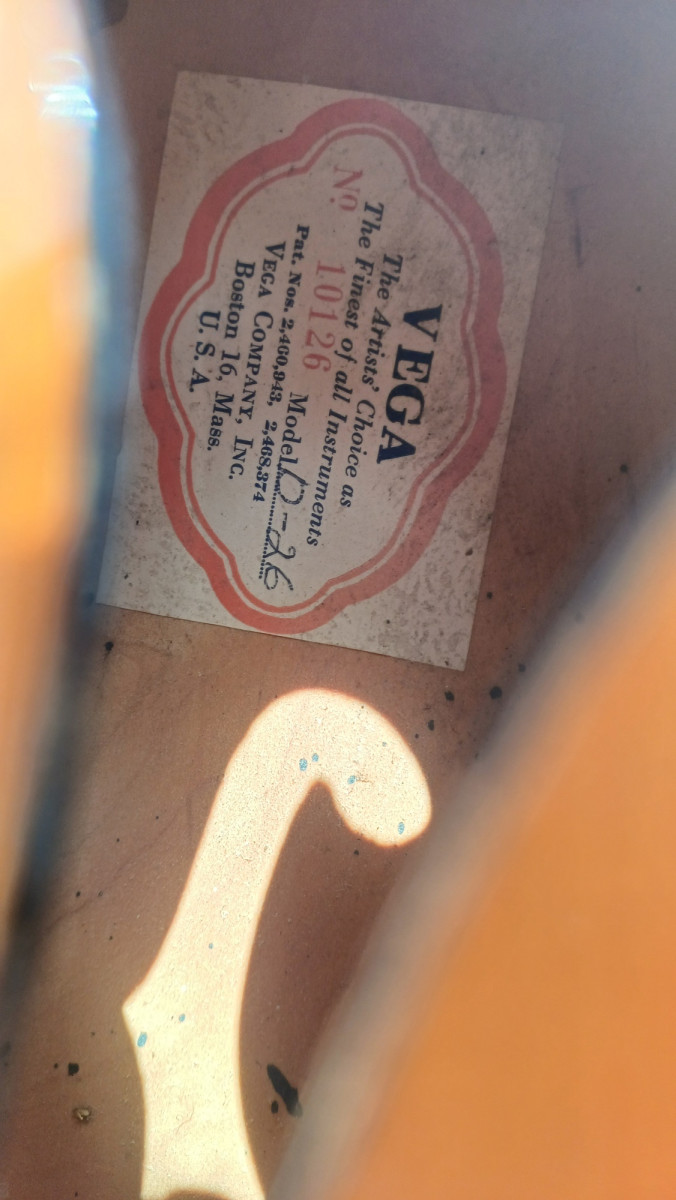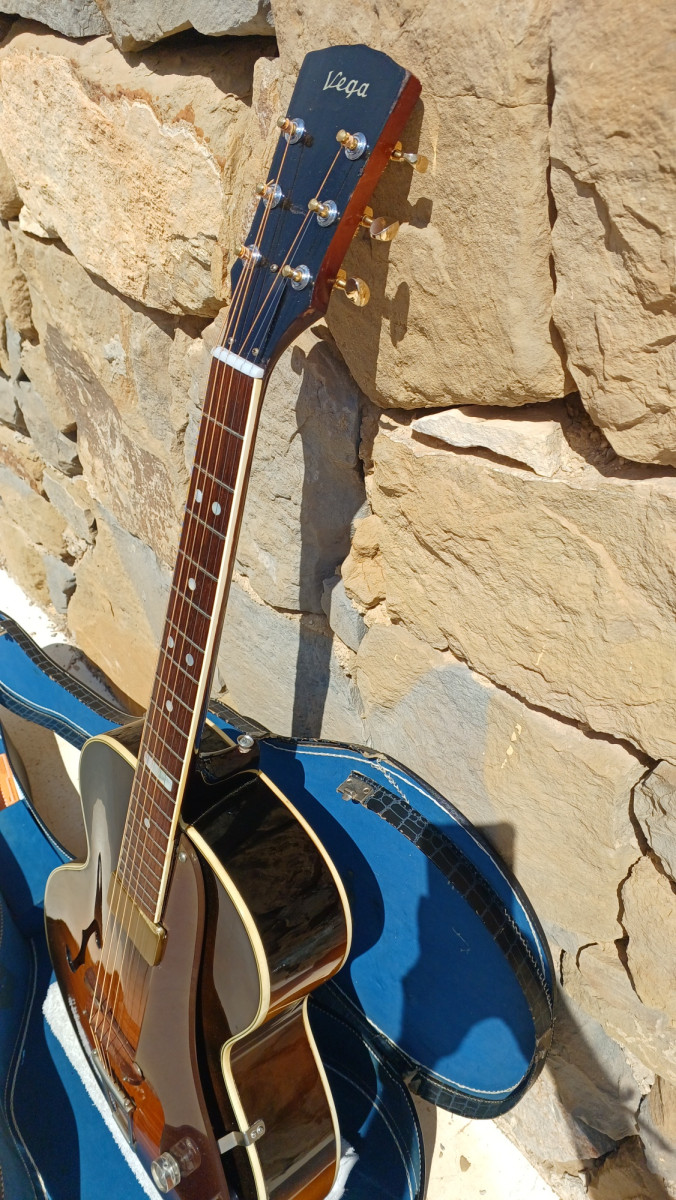Son guitarras muy desconocidas, aunque yo ya he tenido varias y tengo. Su calidad es tremenda, compiten o superan a las gibson de la época. Vega fue comprado por MARTIN en los 50 e hicieron desaparecer la marca. Las eléctricas llevaban pastilla DeArmond unida al cuerpo siempre de formas extrañas, como estea, sin agujerear la tapa. Es mas conocido el control tipo "duotron" pero esta lleva los potes en un pickguard, y la hace infinitamente mas cómoda: el duotron implica el jack en el tailpiece y a mi no me resulta comoda.