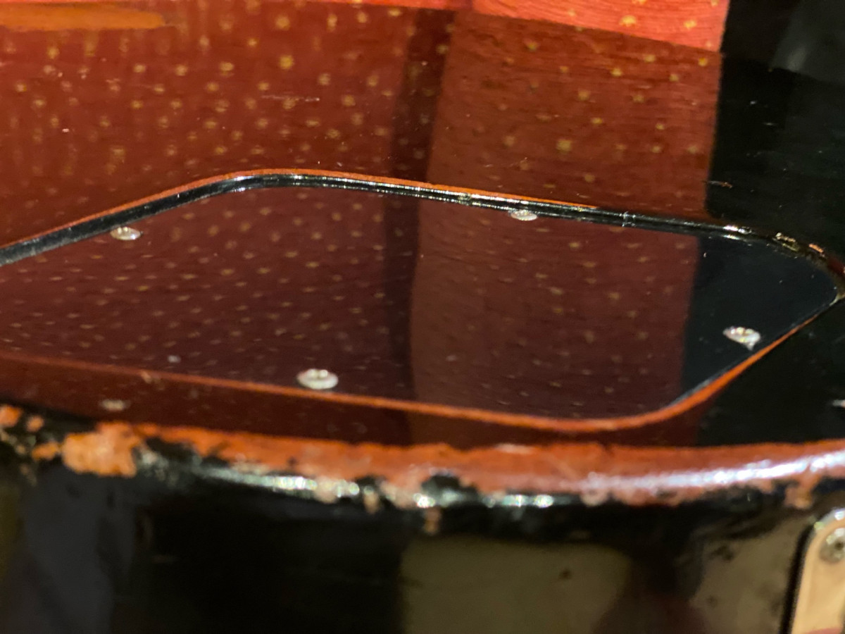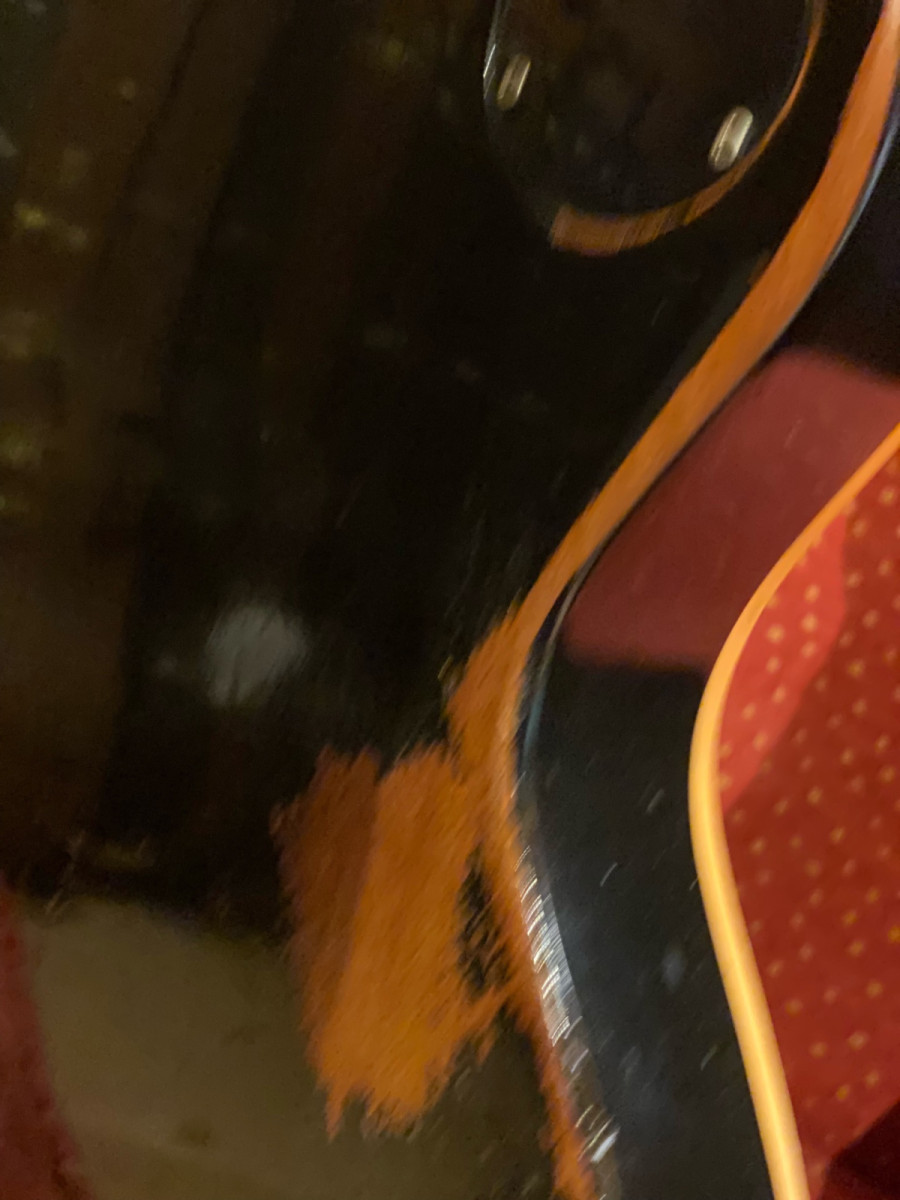 Fantástica tanto en estética como en sonido. Esta deluxe ha sido curtida, se la ve que ha ido mejorando con los años convirtiéndose en una atractiva madurita… Respecto a su sonido es muy interesante está en ese punto telecaster con mala uva de las les paul de los 50 que a mi me encanta. No es que sea muy dicho en esta materia pero desde la osadía de la ignorancia, me atrevería a decir que excepto por las mini humbucker, el doble binding y el logo de la pala,vamos lo que la ornamentación,es como una les paul custom…Las pastillas originales son unas p90 que las tengo puestas en una deluxe goldtop del 75. Consecuentemente la mini humbucker que lleva son del 74/75. La entregaría con sus p90 a no ser que el comprador decida lo contrario Lo no tan ideal… los 4,6 kg que pesa, pero bueno como casi todas las les Paul de esa época.