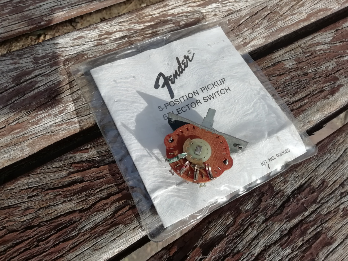 Este interruptor venía originalmente con cada AVRI Stratocaster para que el comprador lo instalara si quería un interruptor selector de 5 posiciones en lugar del interruptor de 3 posiciones que venía instalado de fábrica.