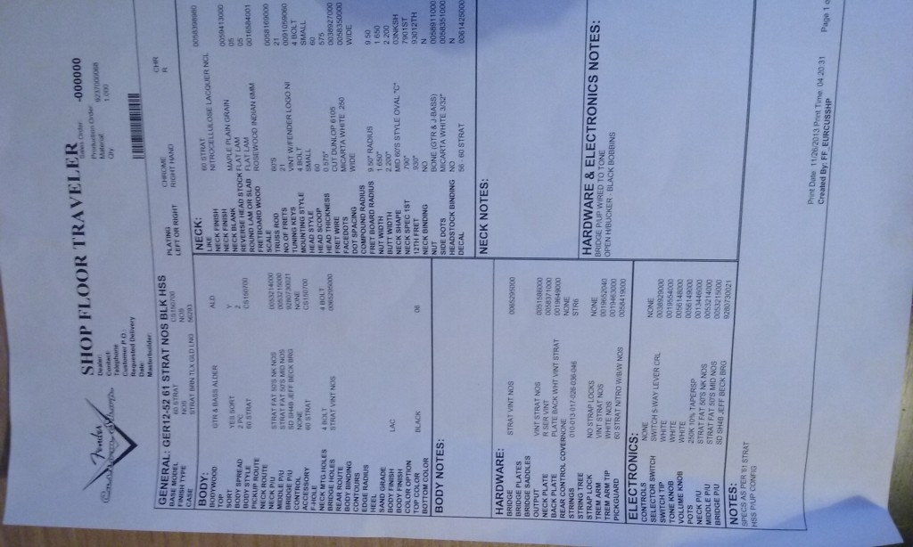 Cambio: 61 Strat NOS BLK HSS Custom Shop
