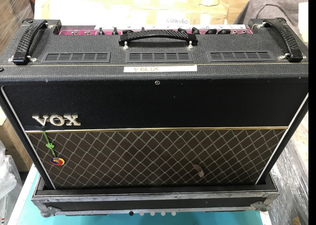 Se trata de un VOX AC30C2X que conserva todas las marcas y ecualizacion del artista así como su hard case específico y usado por la banda en sus giras internacionales.
