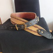 Correa nueva para guitarra o bajo en cuero de vaquetilla con forro total 3 capas. 7 cm de ancha muy cómoda y resistente. Envío por correo certificado y pago por Bizum55€manu r. gamellaAlicanteel 01/03/2025