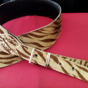 Correa de cuero teñida en vacuno efecto TIGRE con ligero pelo corto 7cm de ancho y también en 5.5 ancho. Envío por correo certificado 7€ y pago por Bizum.45€manu r. gamellaAlicanteel 30/04/2025