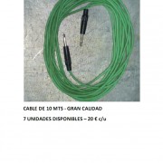 Me deshago de este material: - 7 cables de 10 Mts c/u para guitarra ó pantalla - 10 € c/uno - 1 cable de 5 Mts para guitarra 10 € - 1 cable Fender A 20313 para guitarra 10 € - 1 Cable Viper para guitarra 10 € - 8 Cables de diferentes marcas para...10€ANGELMadridel 14/11/2015
