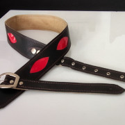 Cuero de vacuno con ligero pelo corto de muy agradable sensación al tacto, no es un rojo chillón tirando a vino tinto. El forro de cuero negro 7cm. de ancho. Envío por correo certificado incluido 47€ pago por Bizum.40€manu r. gamellaAlicanteel 18/11/2024