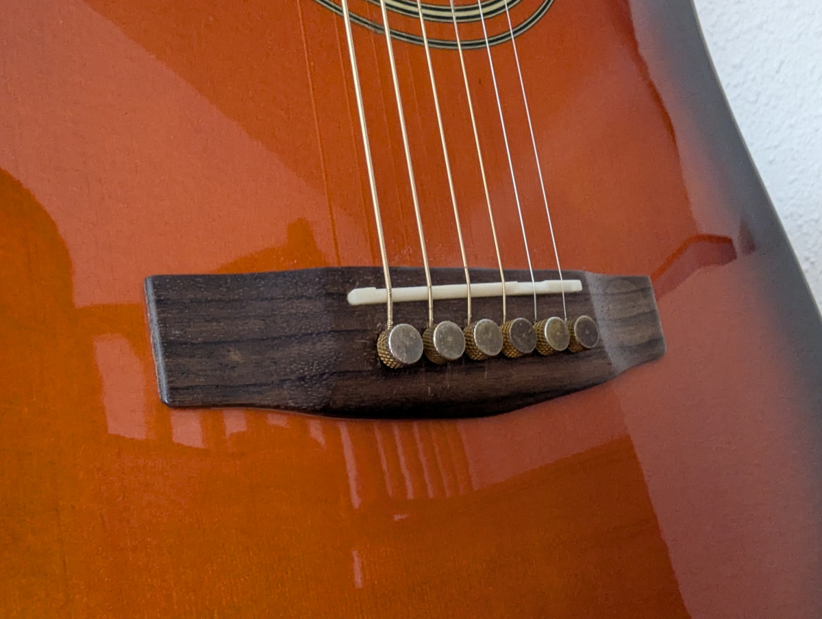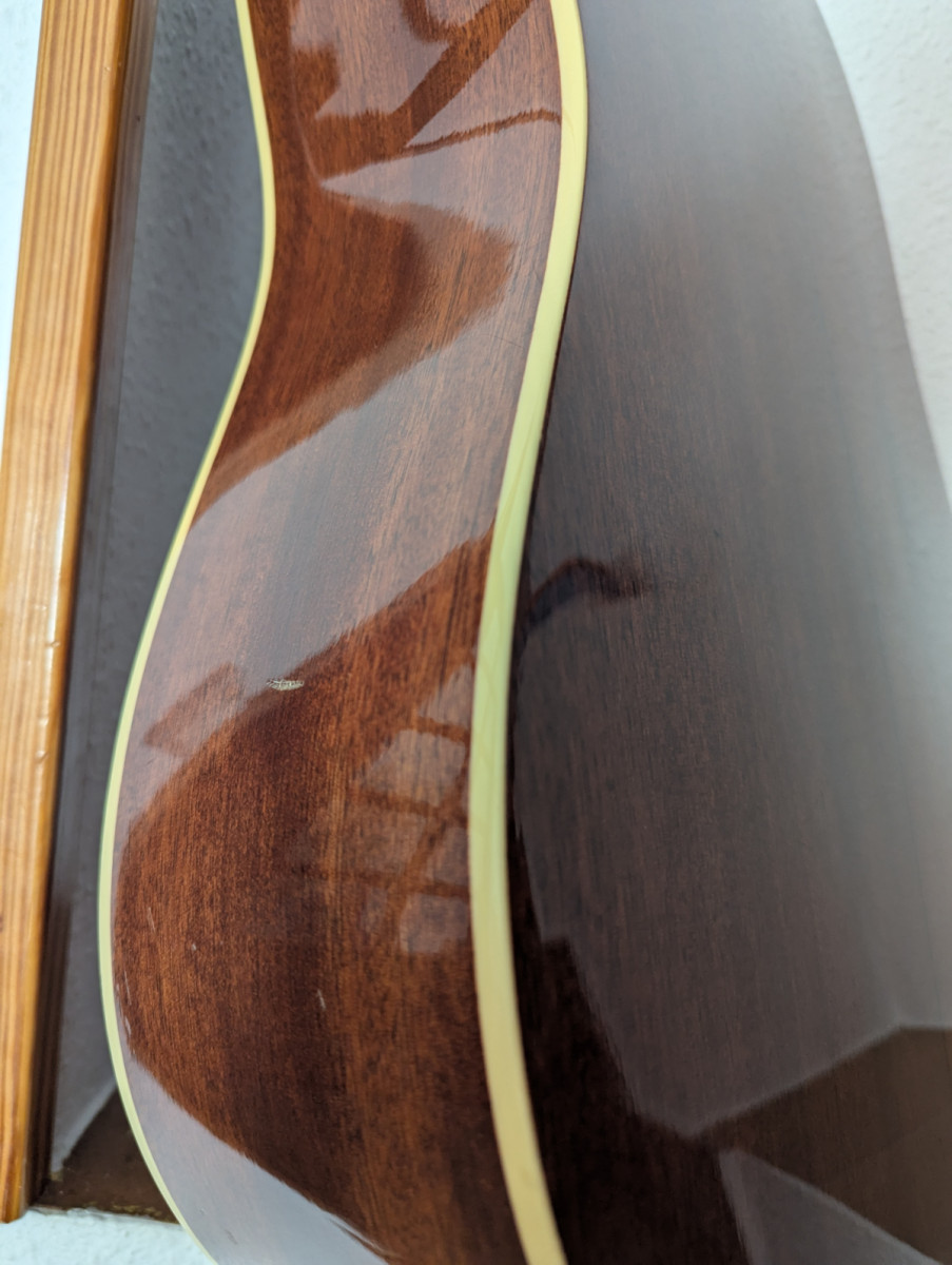 - Mástil, aros y fondo de caoba. Tapa de pícea.