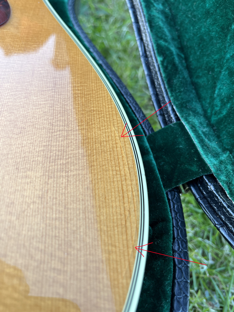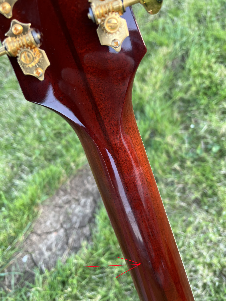 Está en plena forma. Tiene algunas marcas lógicas del uso, pero nada grave, lo marco en las fotos. Lo mas reseñable es un golpecito que sufrió en el mástil por detrás, a la altura del quinto traste, pero el luthier lo arregló con maestría y no se nota al tacto, y a la vista lo encuentras porque lo marco en la foto, que si no, es imperceptible.