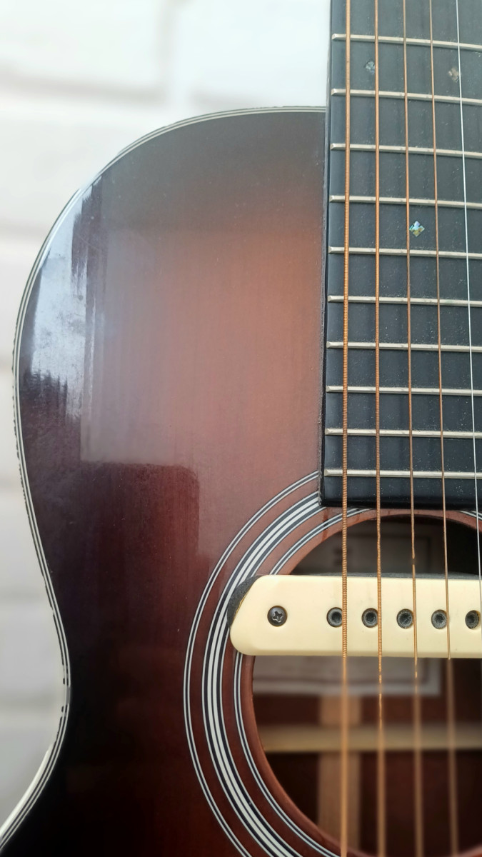 Es una guitarra que he tocado mucho, por lo equilibrada que es. No suena a lata, como otro tipo de guitarras parlor, y al tener buenos graves para el cuerpo que tiene, se puede utilizar para rasgueos perfectamente.