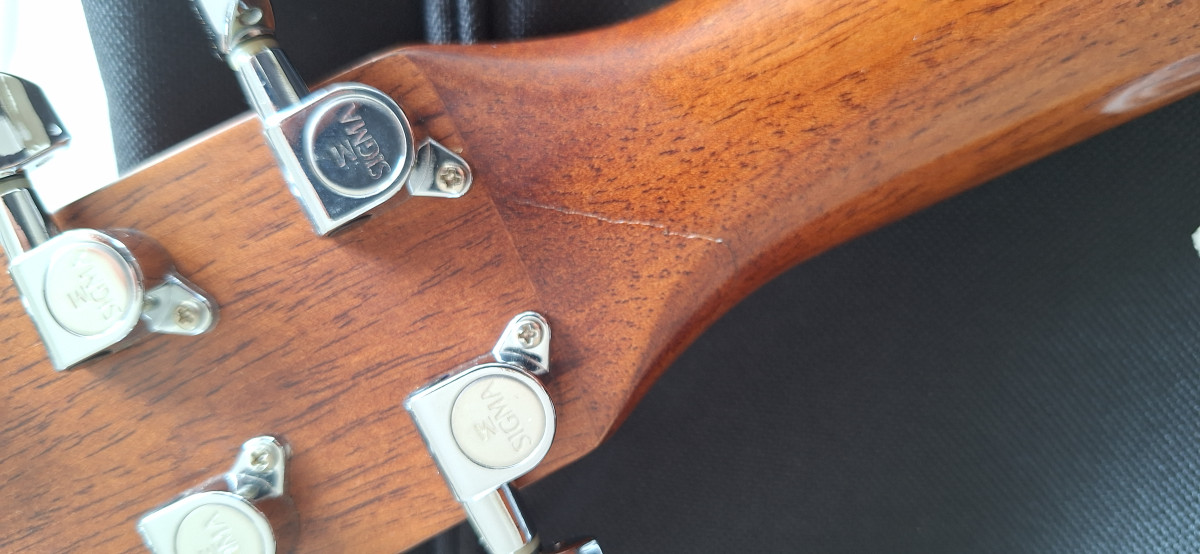 - El mástil tiene una pequeña marca (se ve en la foto), también superficial y que no ha variado, no ha ido a más, en los últimos 4 años.