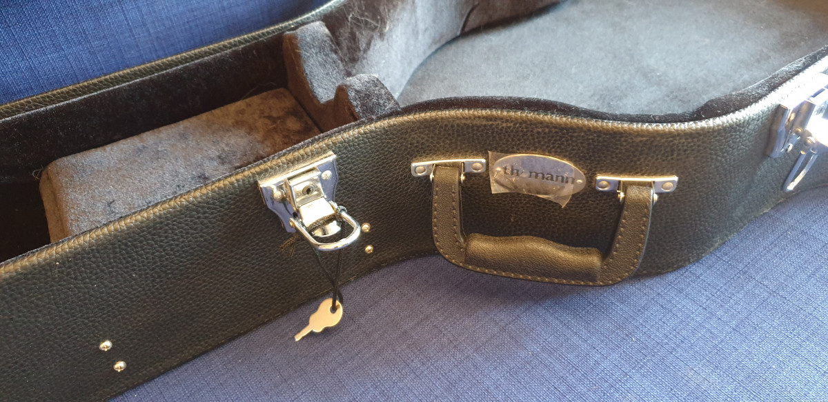Incluye estuche a estrenar comprado en Thomann tipo western valorado en 89 €, aun con plásticos protectores.