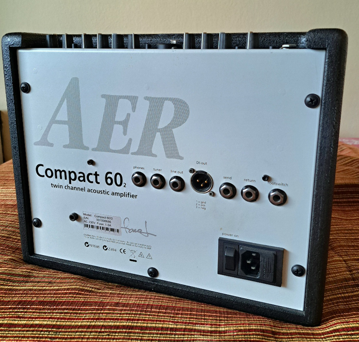 Amplificador para guitarra acústica pequeño pero muy versátil para utilizar en escenarios, estudios y en casa con una potencia de 60 W y dos canales. Color: Negro. Incluye funda.