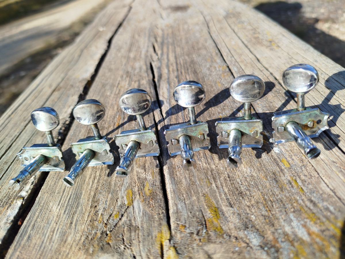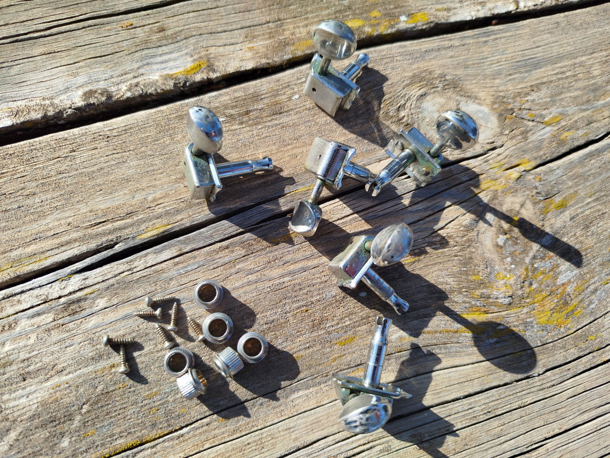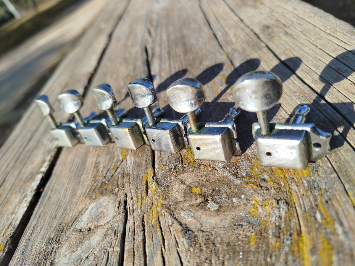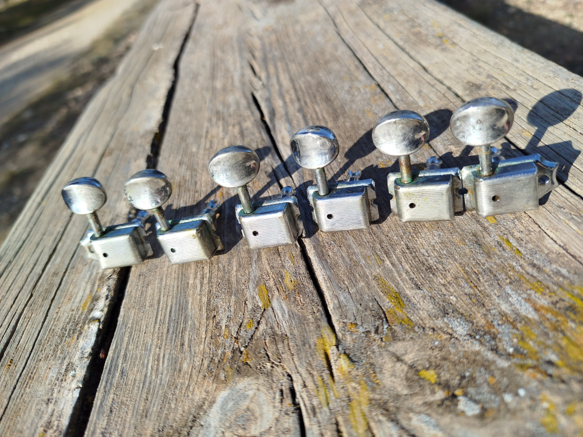 Set de afinadores (6 en linea) Pertenecientes a una guitarra Fender Custom Shop USA.