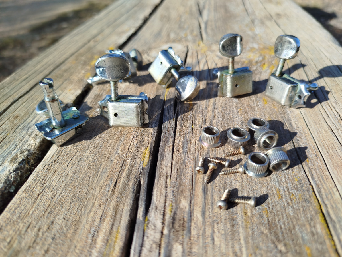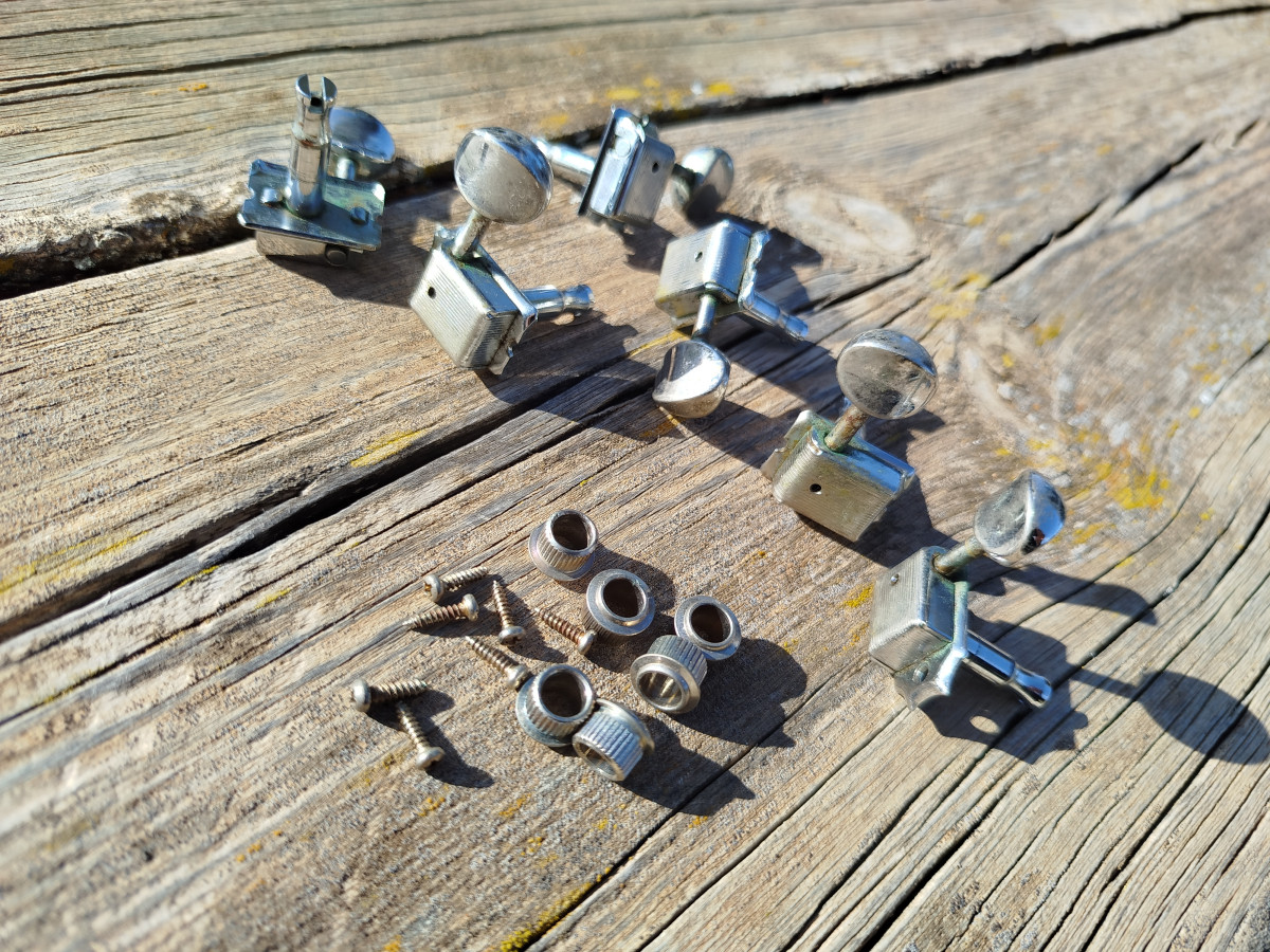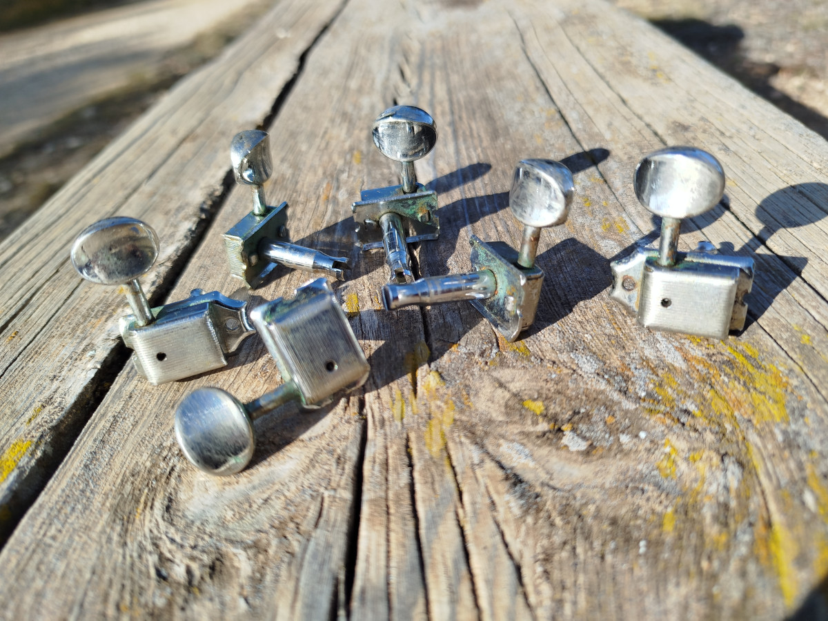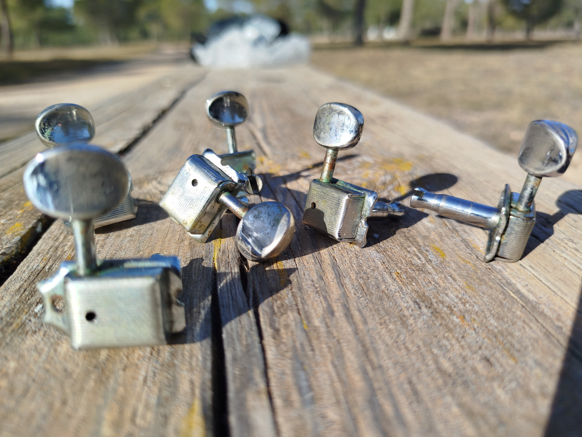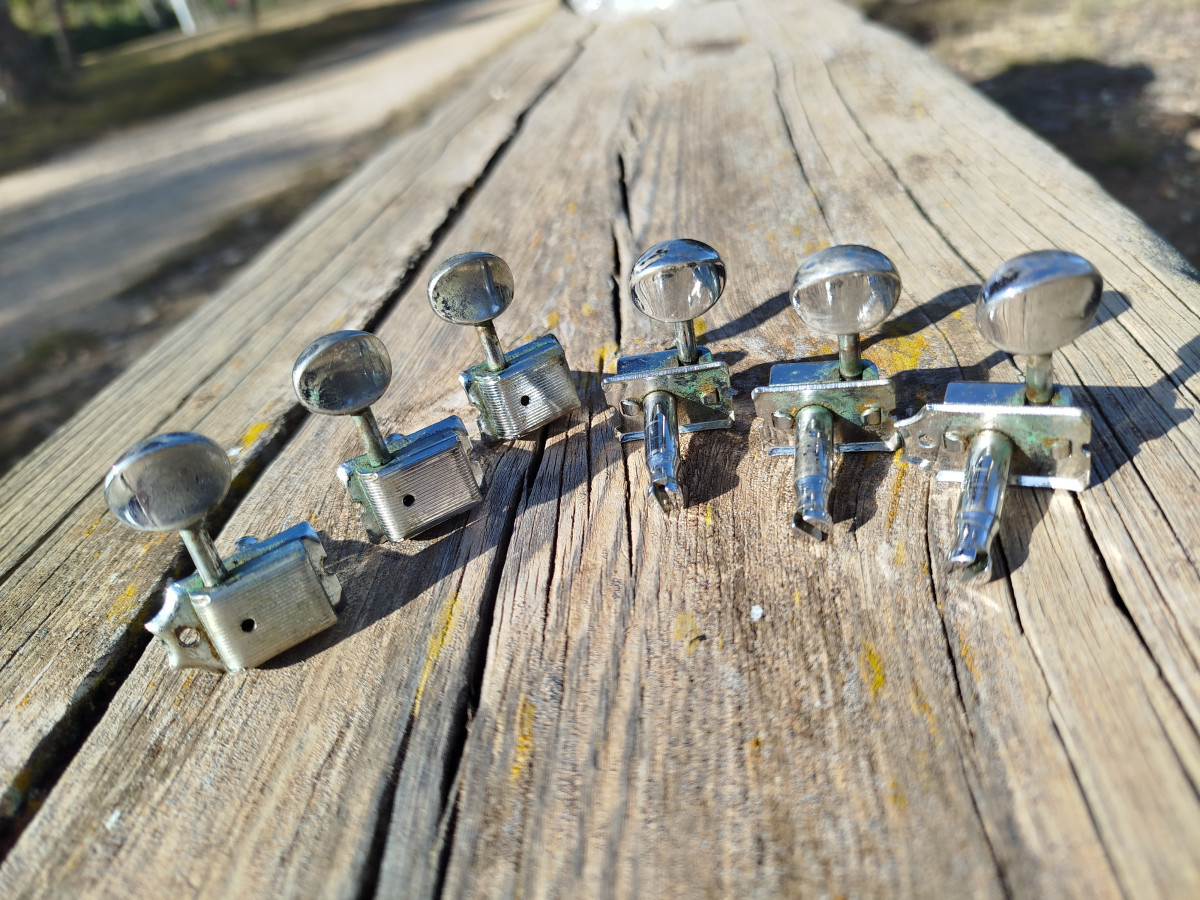 Set de afinadores (6 en linea) Pertenecientes a una guitarra Fender Custom Shop USA.