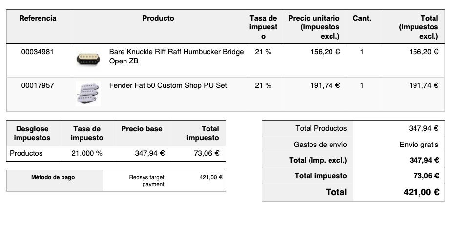 Va incluida también la pastilla original del puente. La HB. Una Suhr si no recuerdo mal.