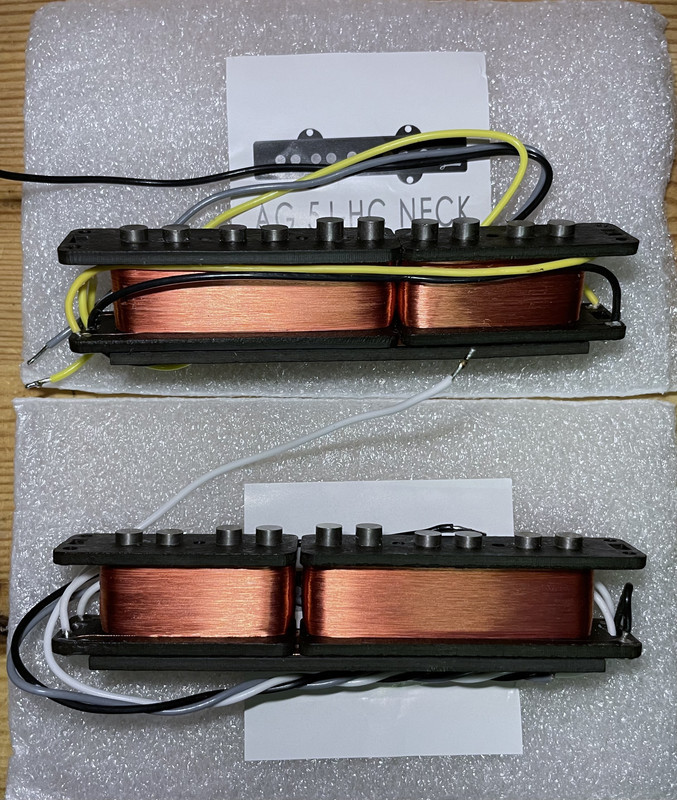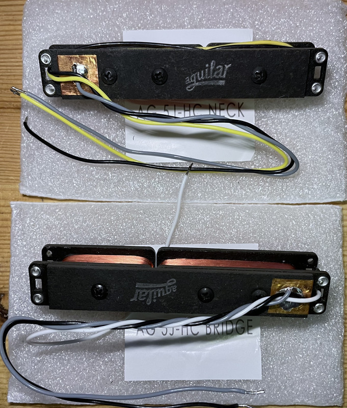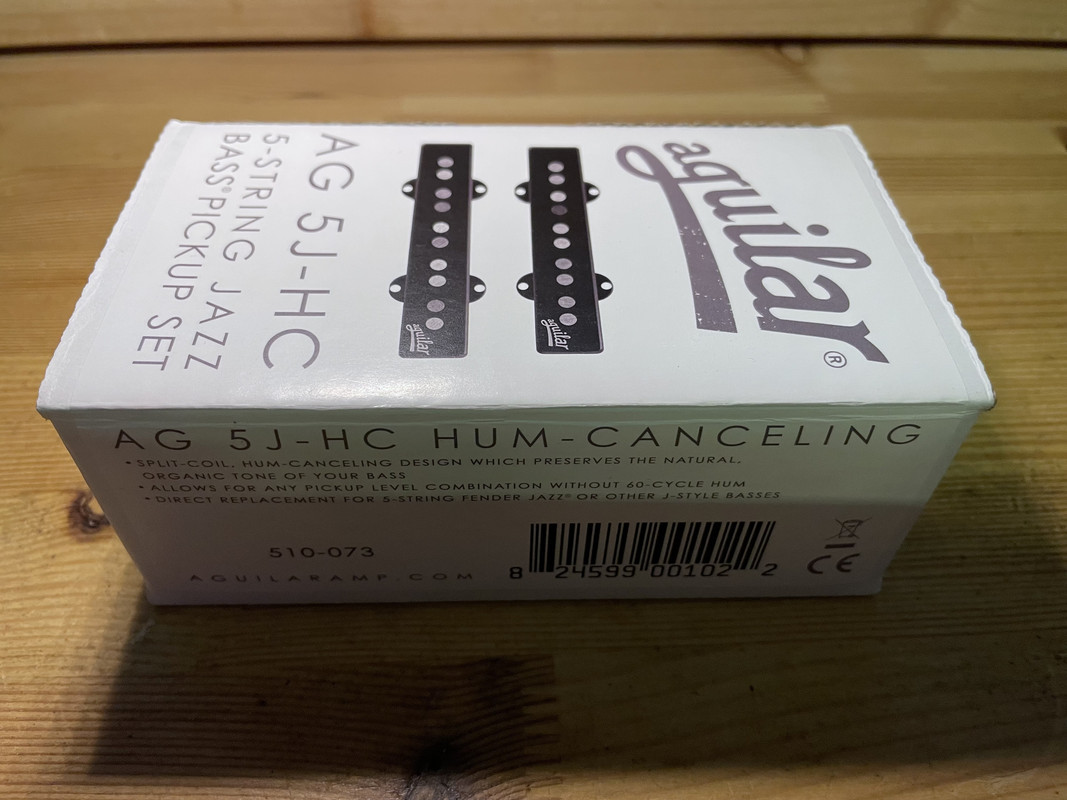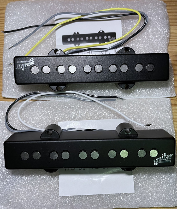A la venta este set de pastillas Aguilar AG 5J-HC con doble imán para cancelación de ruido para bajos de 5 cuerdas. Han sido montadas solo para comprobar su funcionamiento, finalmente no las voy a usar en ninguno de mis proyectos. Una buena oportunidad, están absolutamente nuevas.