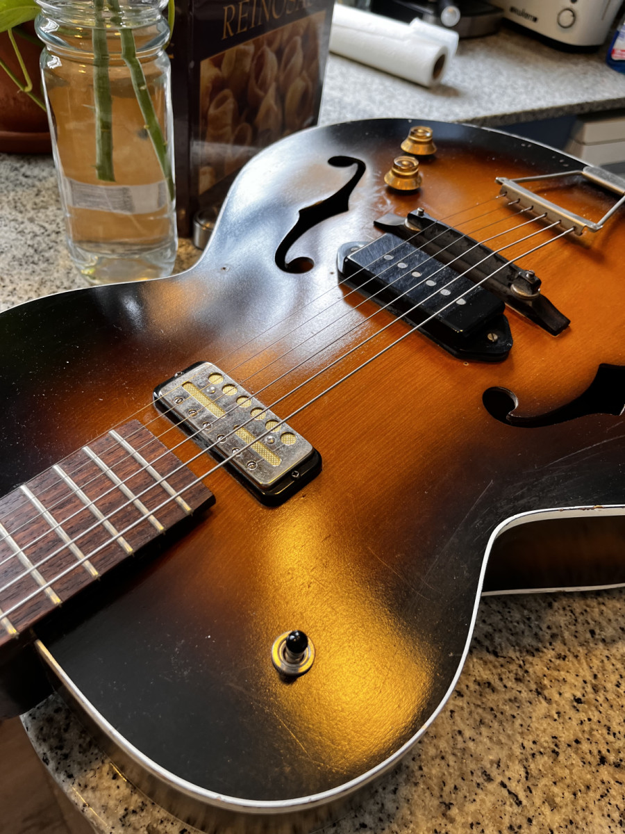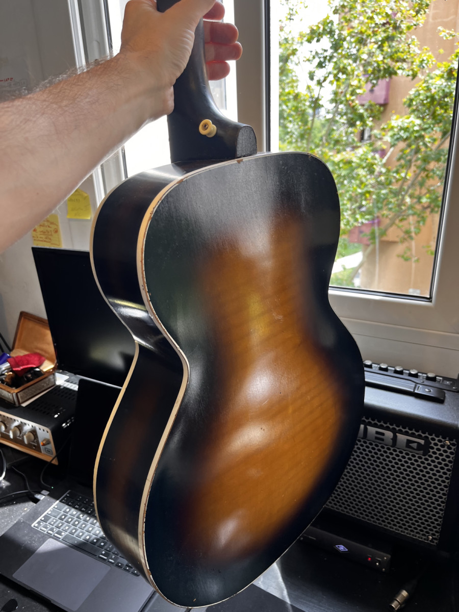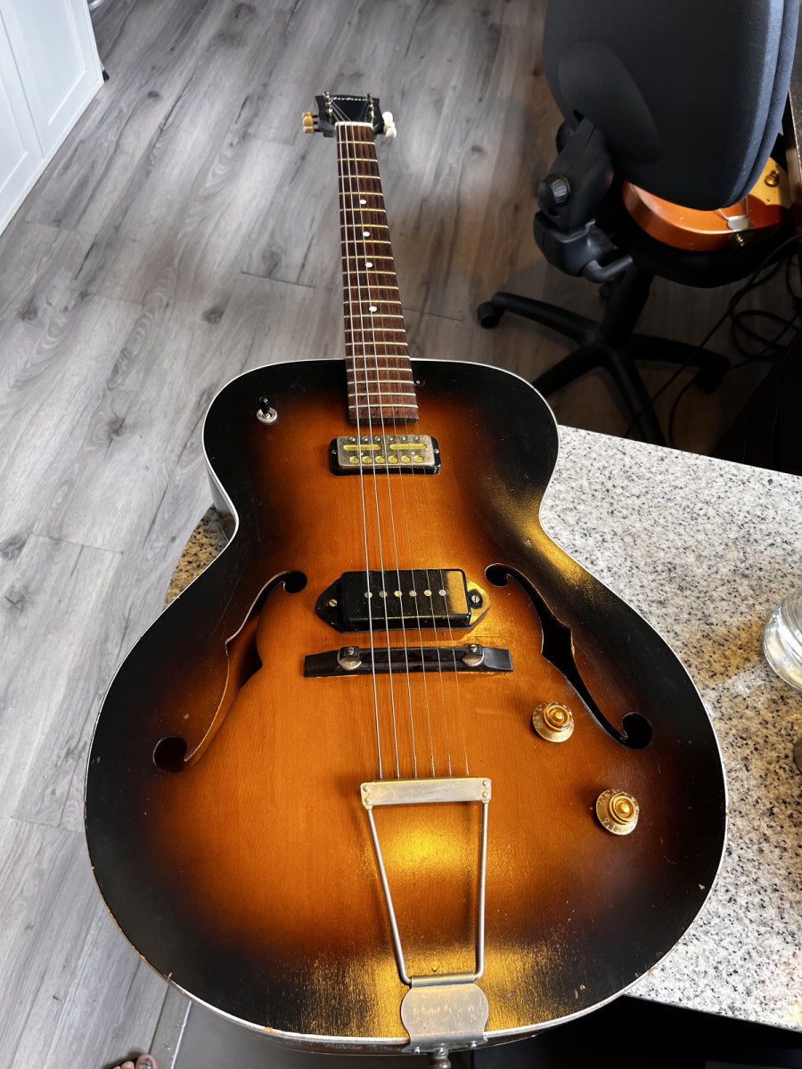 Si quieres una guitar antigua a buen precio esta es una buena opción.... Le puse un par de pastillas, una P90 y una Gold foil que suenan muy muy bien. Si necesitas mas info escríbeme.