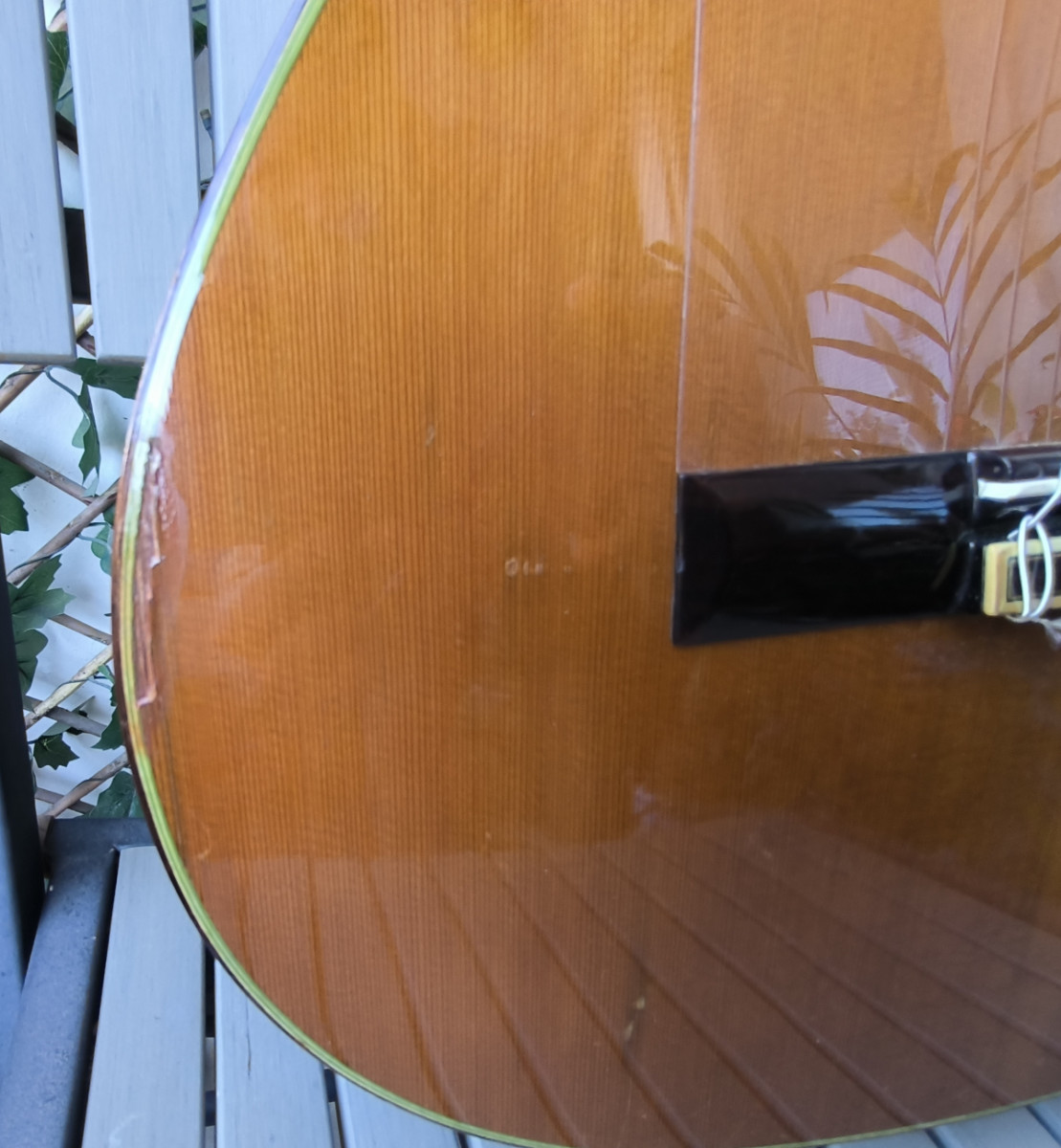La guitarra ha sido revisada por luthier y todo está OK, ninguna rotura, reparación o problema reseñable. Únicamente presenta algún desgaste y roce, en la laca. Es un problema solamente estético que no afecta en nada al sonido, la guitarra suena brutal.