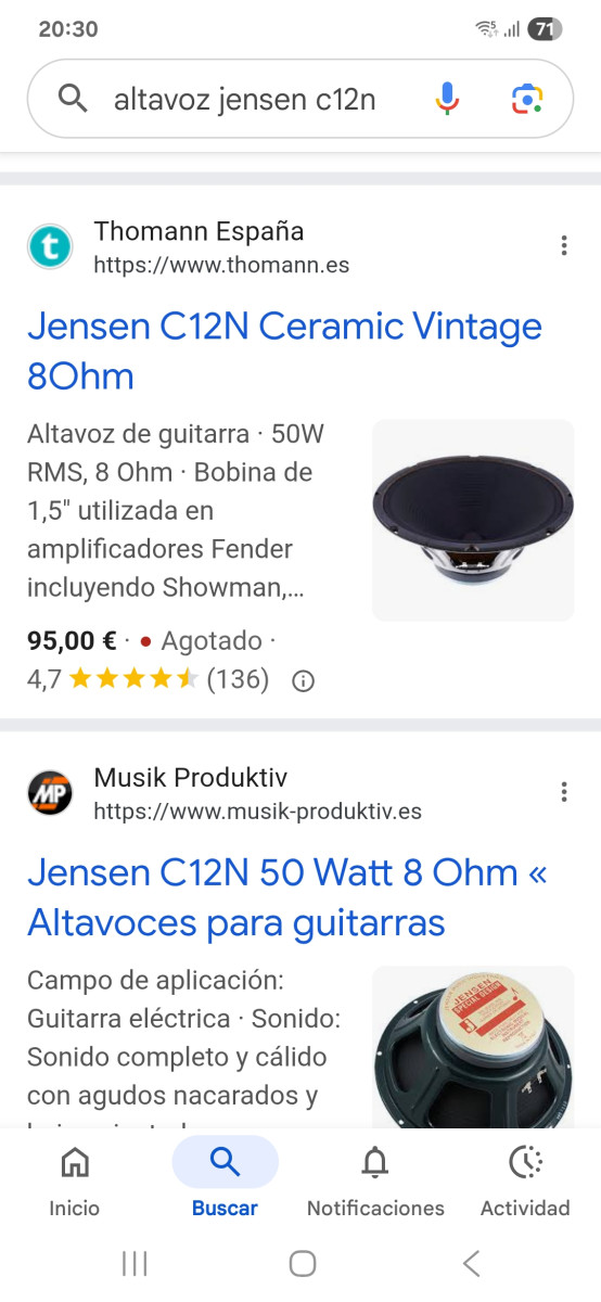 Este anuncio "Altavoz Jensen C12N" está clasificado en la categoría Amplificadores.