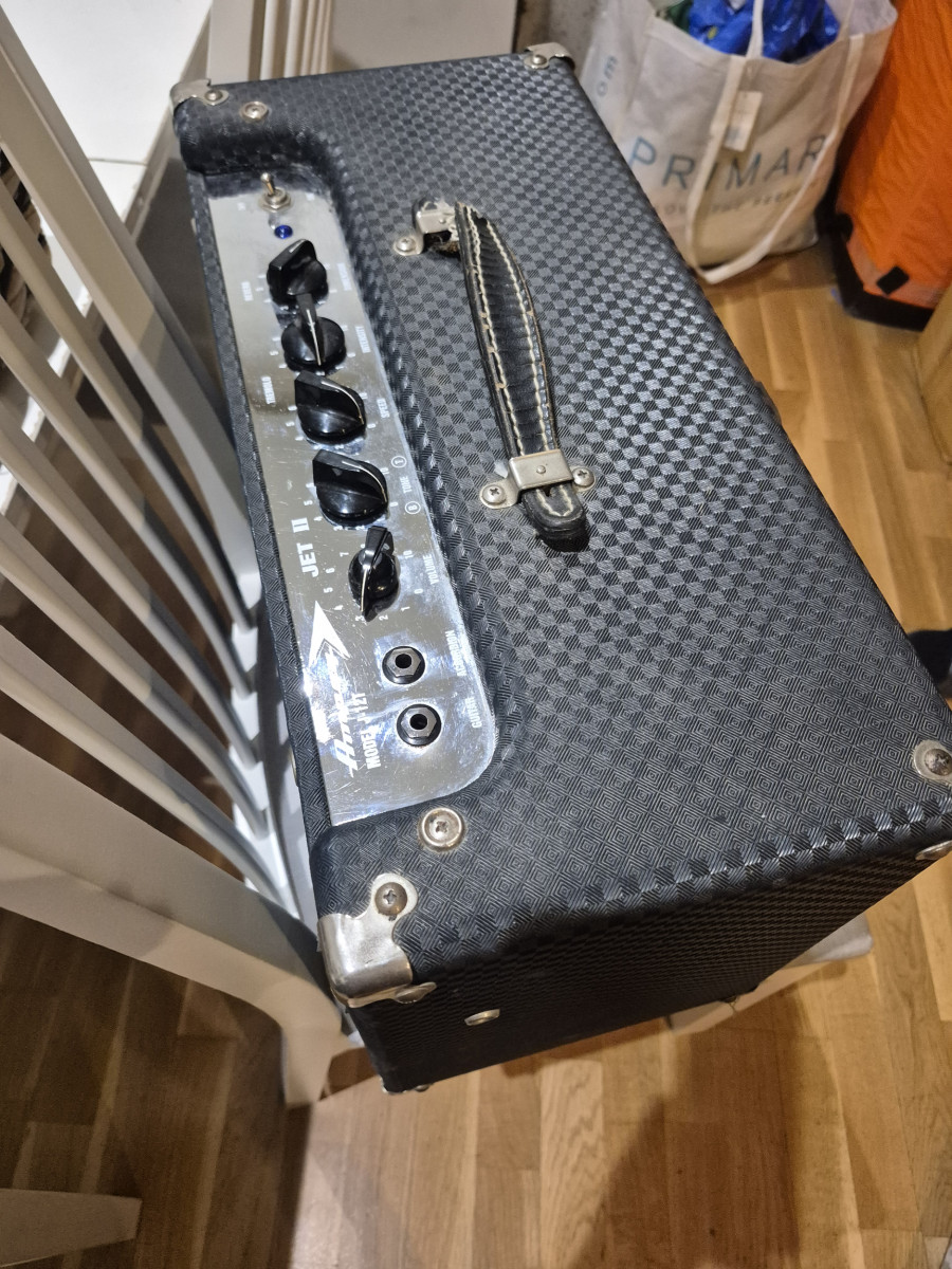 Ampeg Jet, joyita de 15W con reverb y tremolo, cono de 12" y valvulas EL84. Made in USA en los años 90, salvo el asa que esta un poco currada el ampli esta perfecto. NO CAMBIOS mil gracias!!