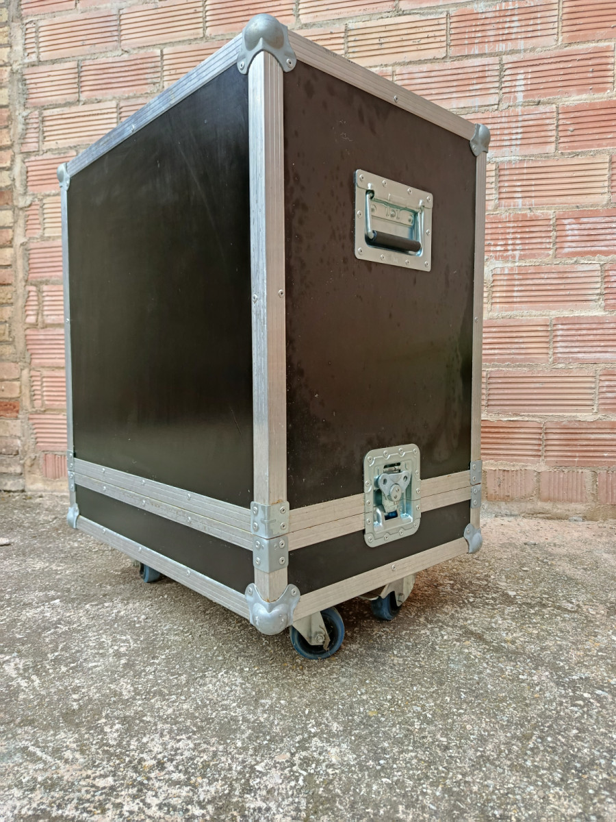 Es ven capçal Ampeg SVT 7 PRO amb pantalla Ampeg SVT 410 HE i caixa de fusta protectora amb rodes.