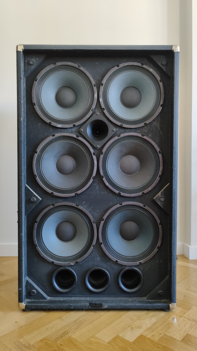 La caja ha llevado trote, tiene múltiples marcas en el tolex, pero no afectan al sonido. Como digo, los conos se cambiaron y al poco lo compré yo (y lleva parado desde entonces prácticamente).