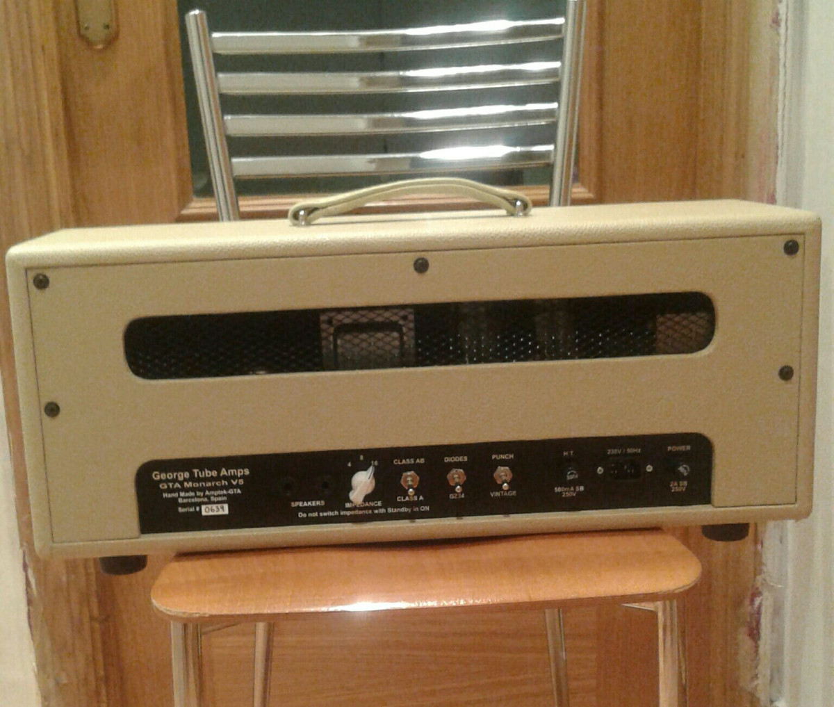 Vendo cabezal George Monarch de boutique ,completamente nuevo hecho todo a mano y punto a punto por el gran Jorge Bueno de amptek. Son 50 watios de pura cremosidad y se puede utilizar a menos de la mitad de volumen en clase A con los selectores que tiene,lleva las famosas válvulas Kt66,con un limpio cristalino y lleno de armónicos,eso sí llegando a saturar generosamente si se quiere,el color es precioso color crema y la rejilla blonde(color paja). Se puede consultar la web de amptek para más información.Lo vendo a muy buen precio 850 Euros. No me interesan cambios.Prefiero entrega en mano. Teléfono 685731242.