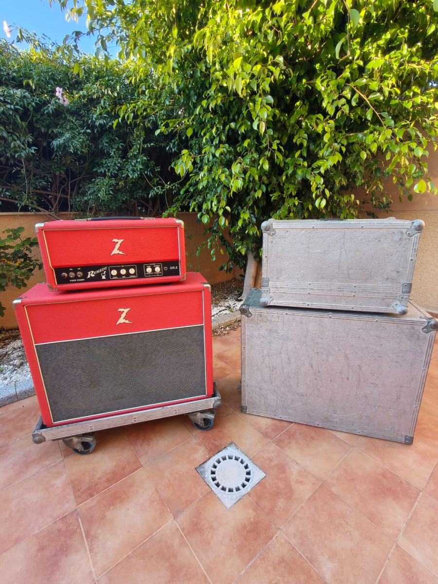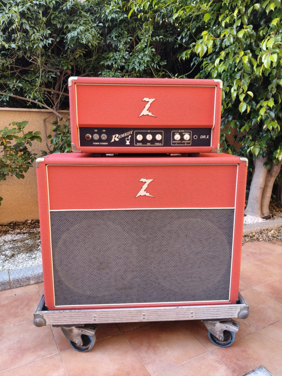 Amplificador de guitarra Dr. Z Remedy de 40w y pantalla Dr. Z 2x12 rojos más flight case a medida con suspensión de muelles en el del cabezal. Vendo esta bestia de 2011 con un sonidazo increíble, vendo porque mi hernia discal ya no me permite moverlo, único dueño, con marcas de uso aunque siempre ha estado en flight case, recién revisado por Vicente Morellà de Bull Skull y funcionando a la perfección.