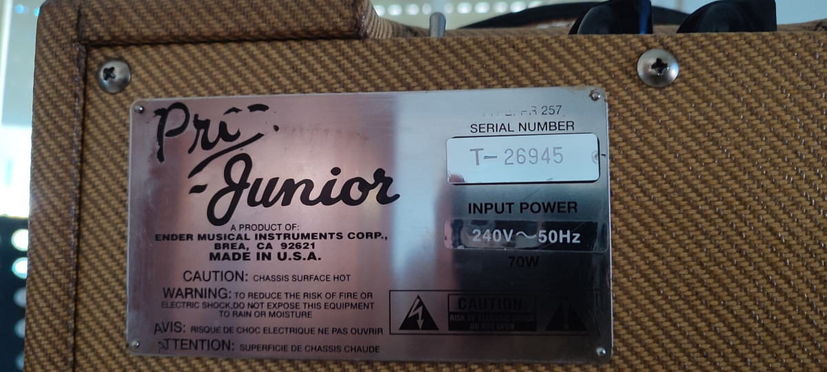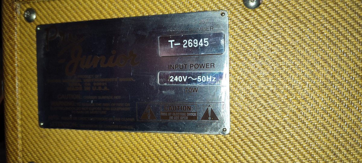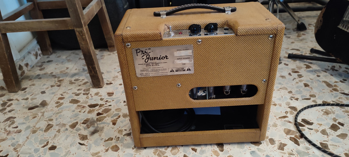Amplificador Fender Pro Junior Tweed de 1994, hecho en USA. Está en buen estado, con señales normales de uso.