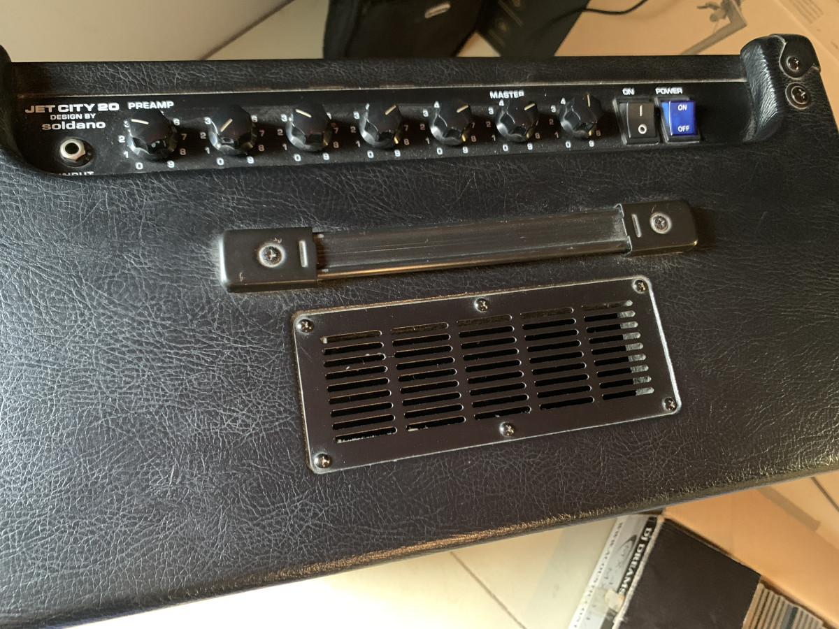Altavoz Eminence, potencia de amplificación 20 watt. a válvulas, preamp y master independientes, reverb de muelles incorporada.
