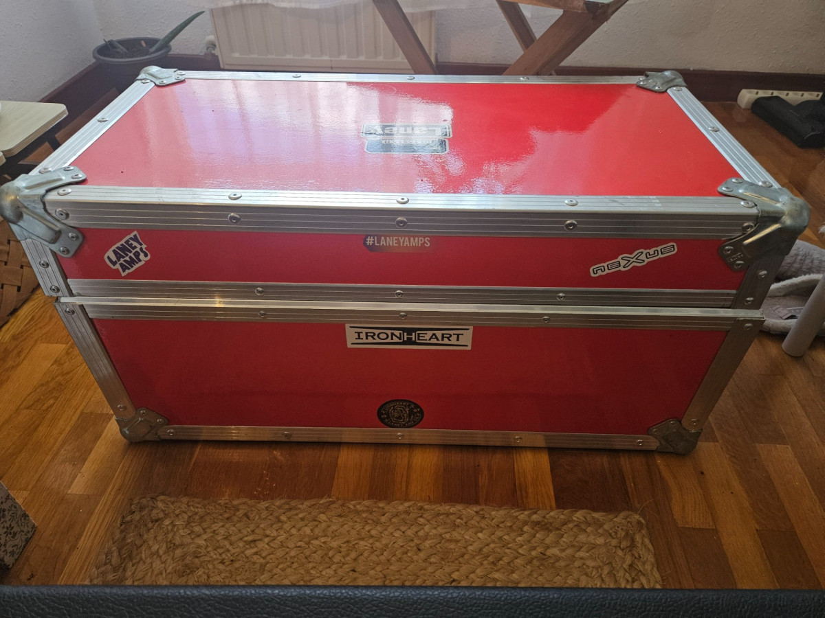 Amplificador Laney ironheart con pedal y flycase hecho a mano.