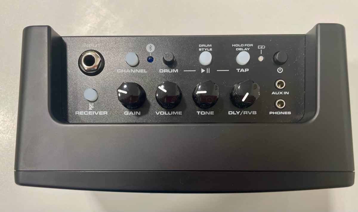 2 altavoces de 2" con radiador de graves pasivo. Varios canales integrados: Clean, Overdrive, Distortion, Acoustic, Pop, Rock y Funky. Pistas de batería.