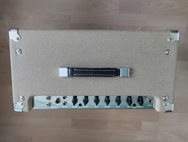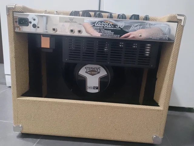 Combo a válvulas (3 válvulas 12AX7 + 4 válvulas EL84) 30 W a 8/16 Ohm. 1 altavoz Stephens M12m (por lo que he leido en un foro, es "un clon de los Celestion G12H de los años 60 y 70").