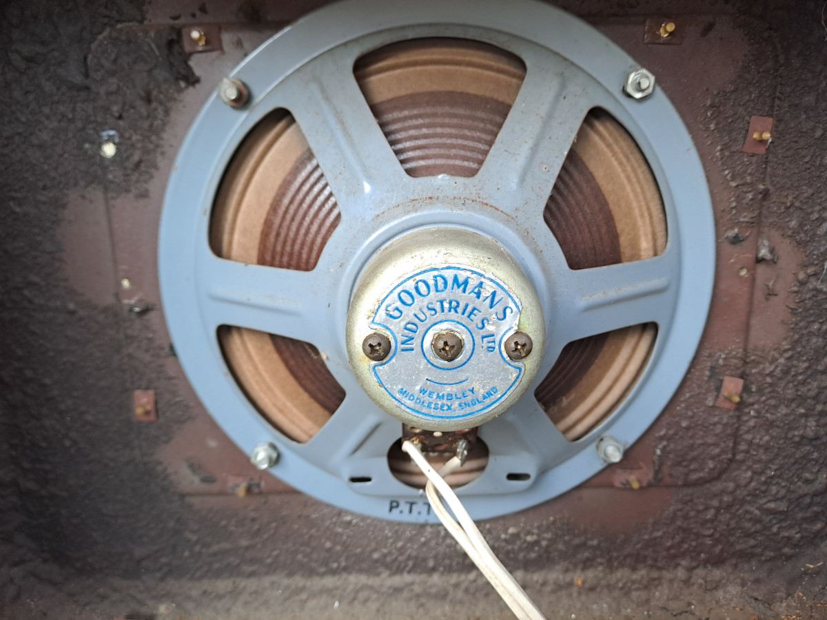 A juego con él puedo incluir esta pantalla ptt de los años 60 con su altavoz goodmans alnico de 8 pulgadas made in England original.