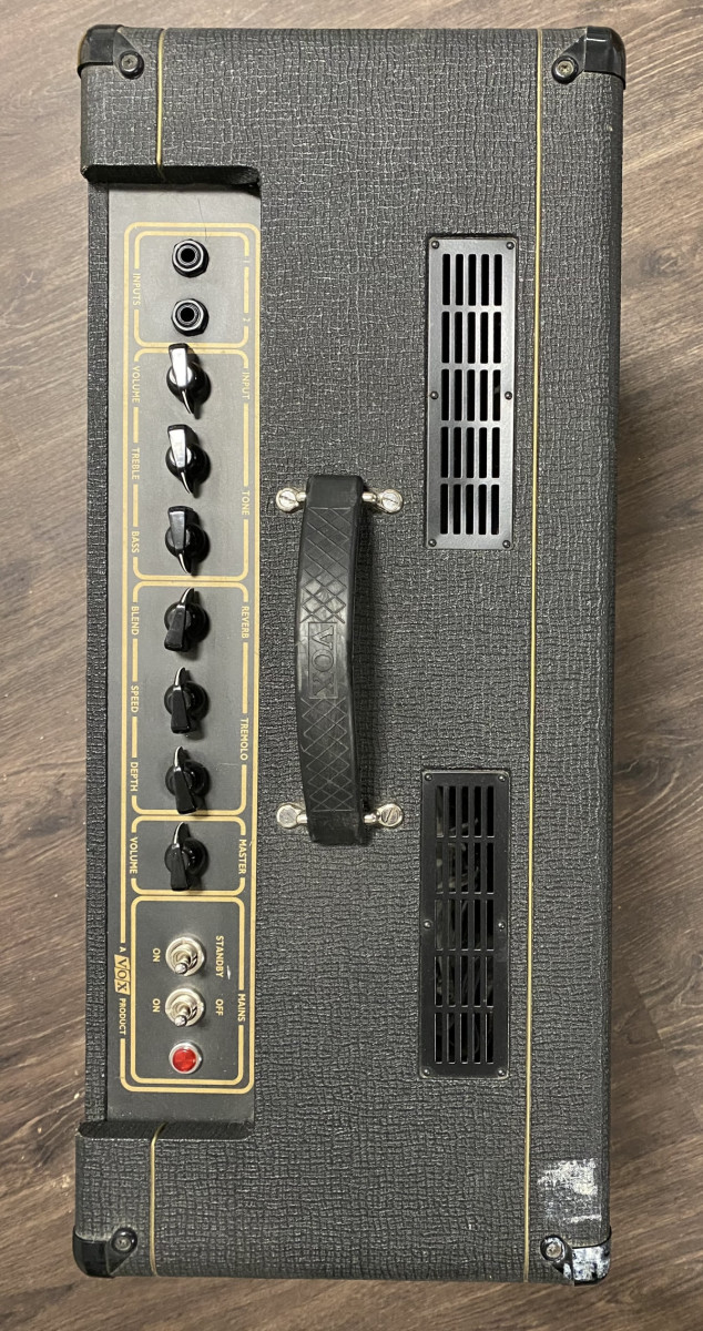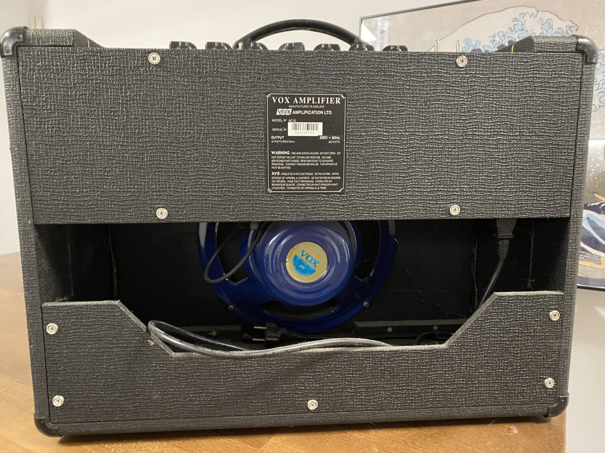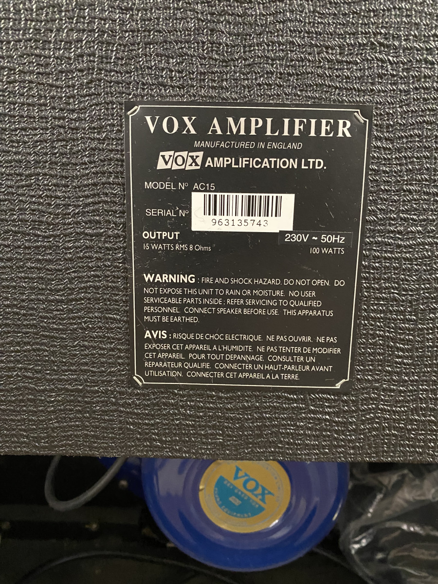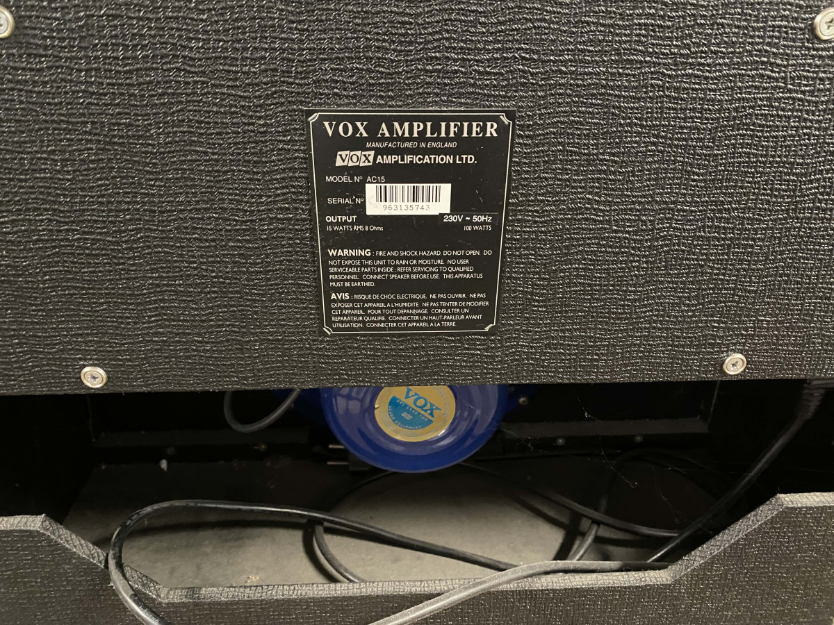 Este amplificador es un producto fabricado en el Reino Unido, comprado en la tienda BOSCO de Madrid en 1997. Un diseño de dos entradas y un canal que replica la circuitería de los AC15 fabricados por JMI a principios de los 60. Conserva el driver de imán de alnico Celestion Blue original. No así la reverb de muelles que decidí quitarla en su momento.