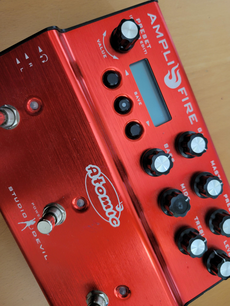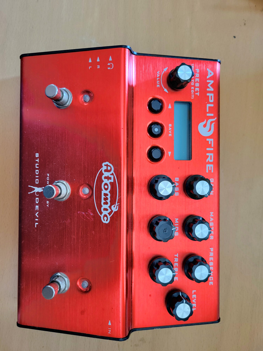 Vendo pedal emulador de amplis, cabinas y efectos AmpliFire Atomic 3, el de 3 pulsadores.