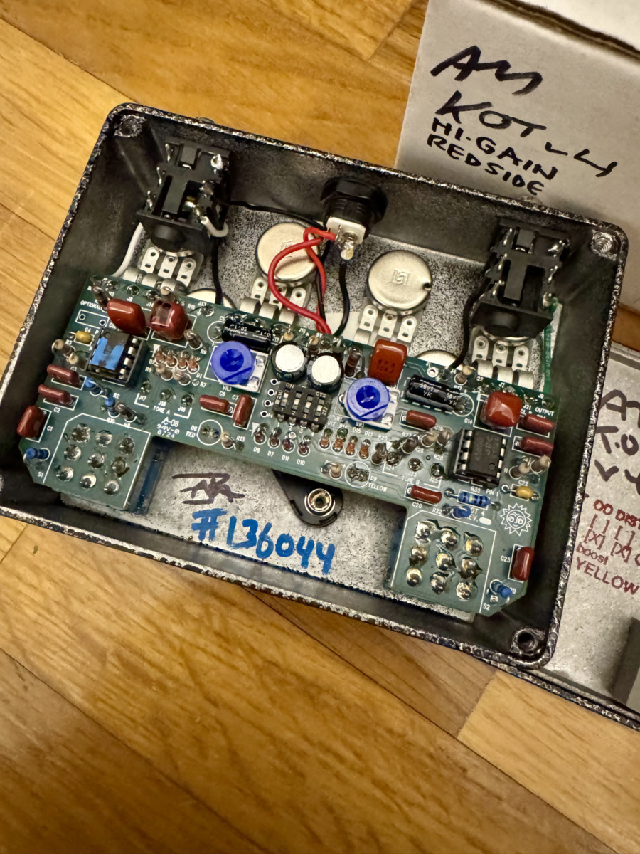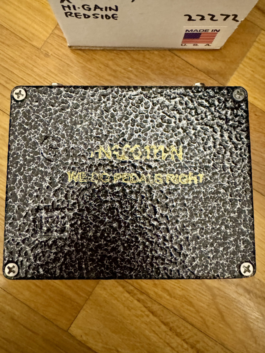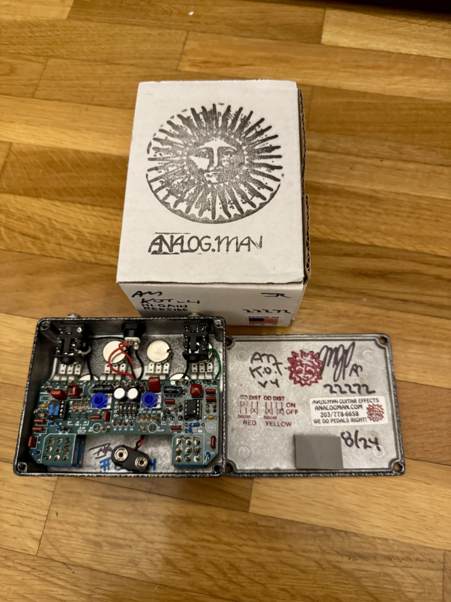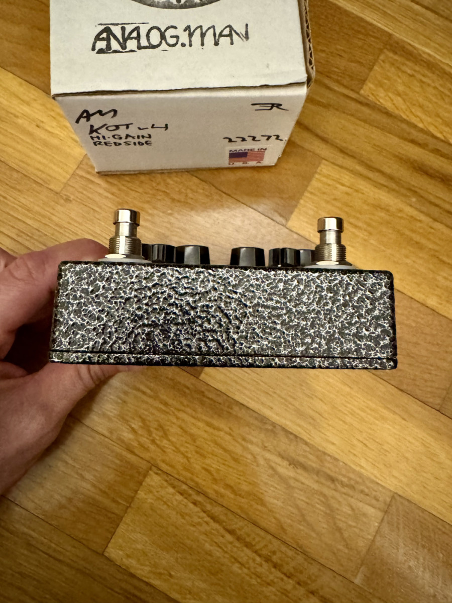 Analogman King of Tone V4 con opción High Gain en el canal rojo. Acabado Black Speckle, impecable, sin velcro ni marcas. Incluye caja, bolsa, stickers, paño tie-dye y documentación originales.