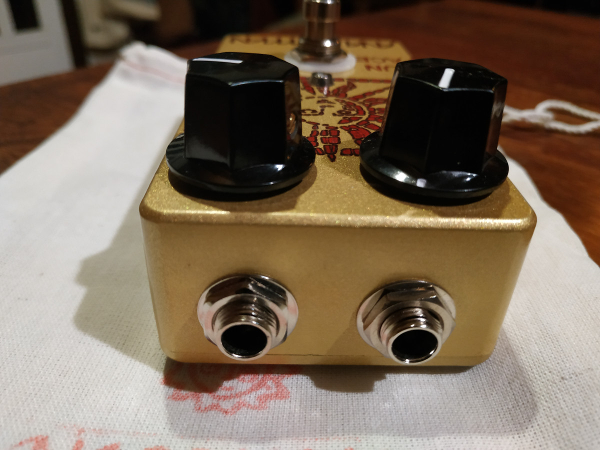 Con todas las opciones: DC Power, LED rojo y jacks montados en la parte de arriba.