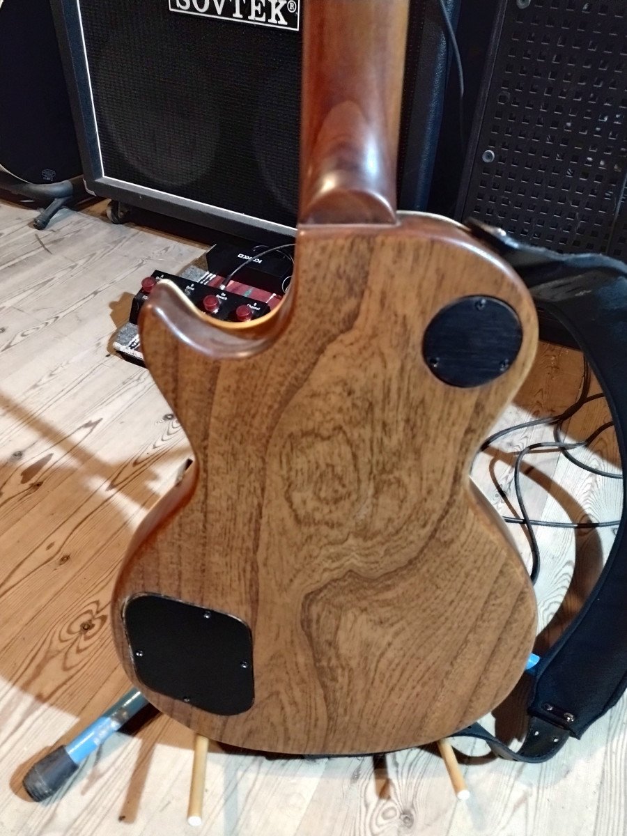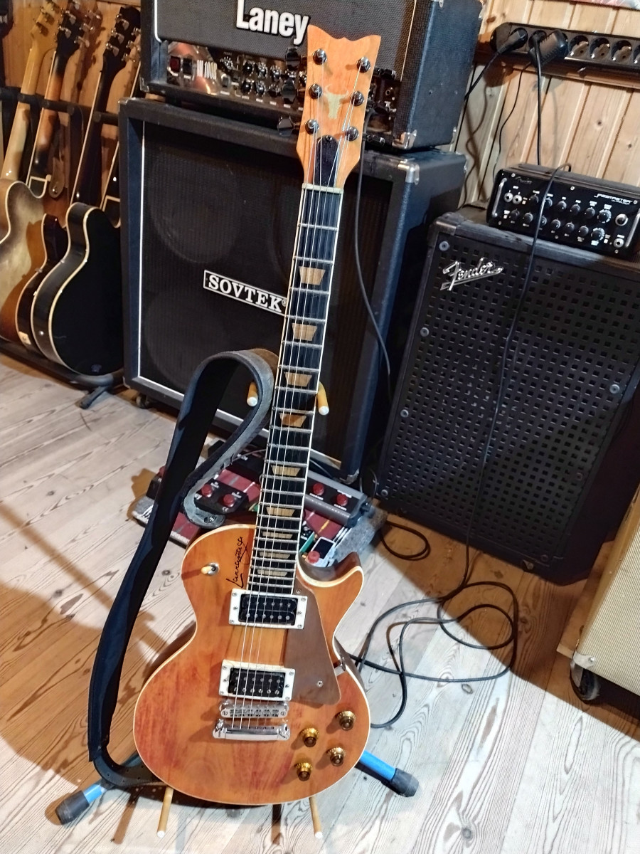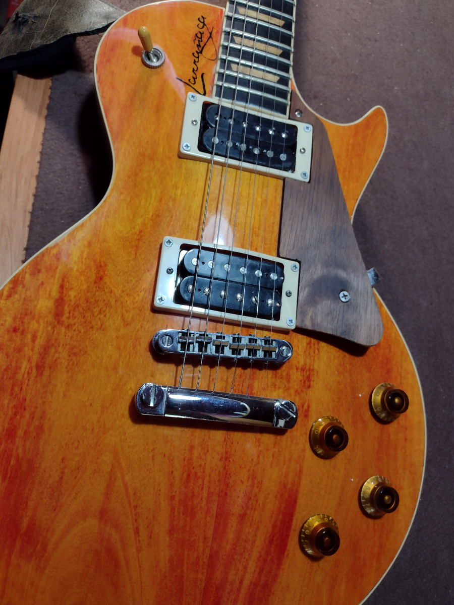 les paul preciosa, de finales siglo XX del luthier larrañaga en perfectas condiciones,pastillas gibson y maderas exoticas o CAMBIO