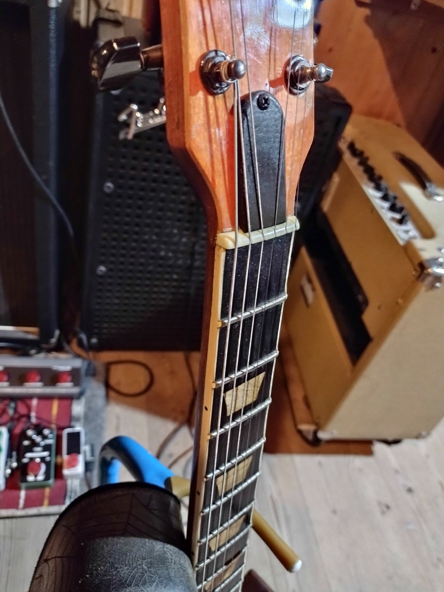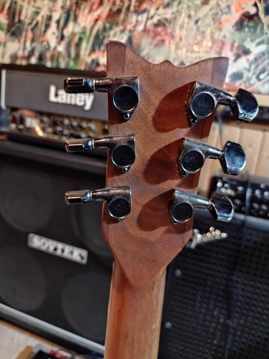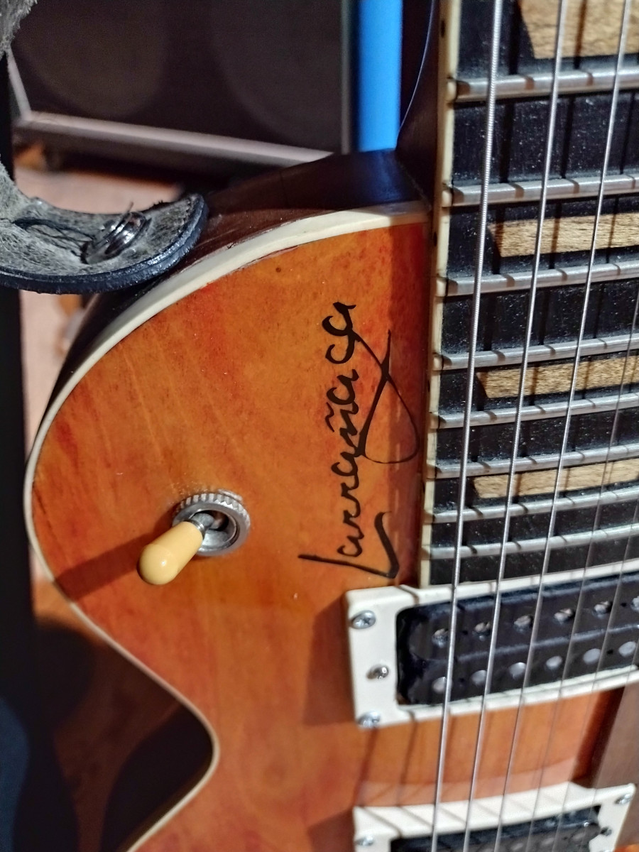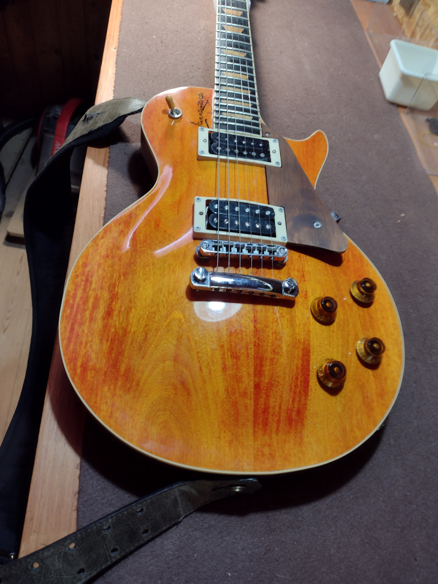 les paul preciosa, de finales siglo XX del luthier larrañaga en perfectas condiciones,pastillas gibson y maderas exoticas o CAMBIO