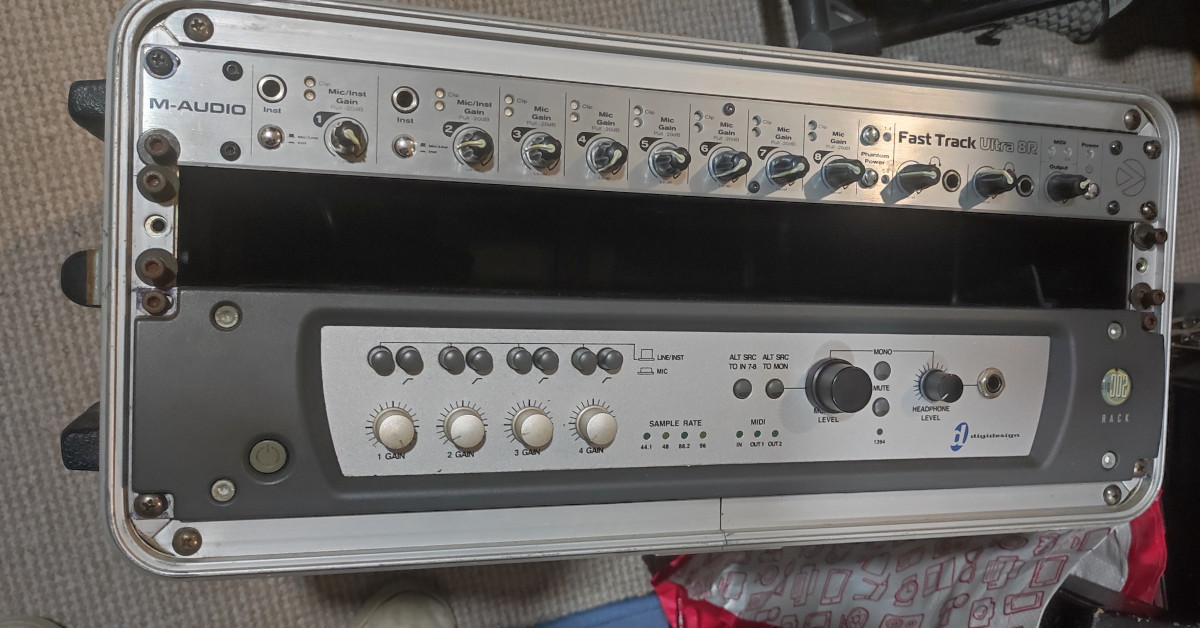 2. -->M-AUDIO Fast Track Ultra 8R .La tarjeta responde con total normalidad al conectarle un cargador de su voltaje,(responden todos los botones y sin holgura y encienden las luces de inicio pero no la reconoce el ordena cuando estan los drivers instalados y anda conectada por usb (en la página pone claramente que no acepta usb 3.0 y la compatibilidad por internet hasta windows 10 y 11 parece que la debería tener sin problema alguno)ofrezco sólo la tarjeta sin transformador ni cable midi/rca