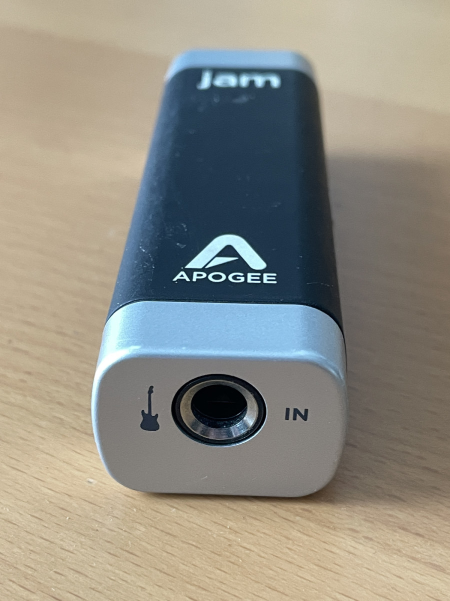 Interfaz o adaptador para conectar una guitarra o un bajo a un dispositivo movil (técnicamente se puede conectar cualquier fuente de audio mono no balanceada). Ademas del cable USB propio de Apogee incluyo un adaptador del conector de 30 pines a Lightning para poder conectarlo a dispositivos Apple.