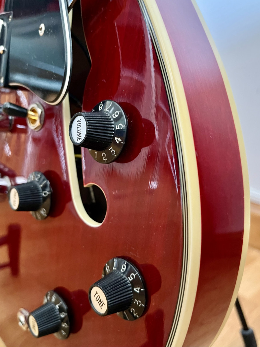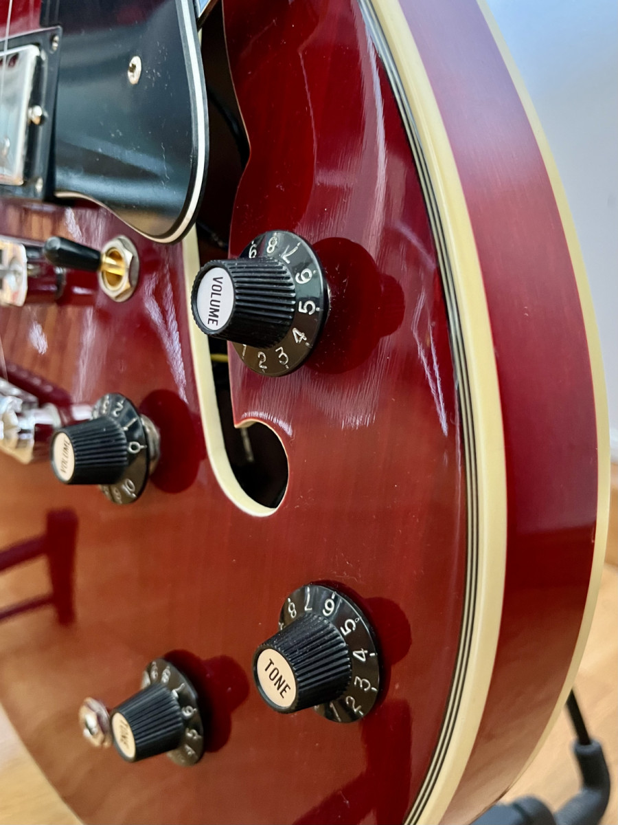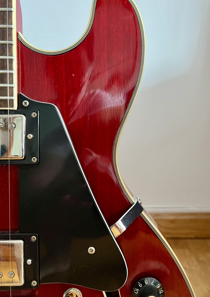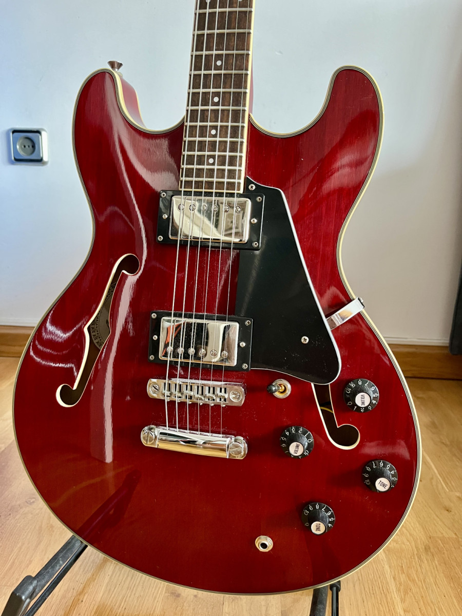 Es una guitarra ideal para iniciarse en el mundo de las 335 prácticamente por el precio de las pastillas que lleva.