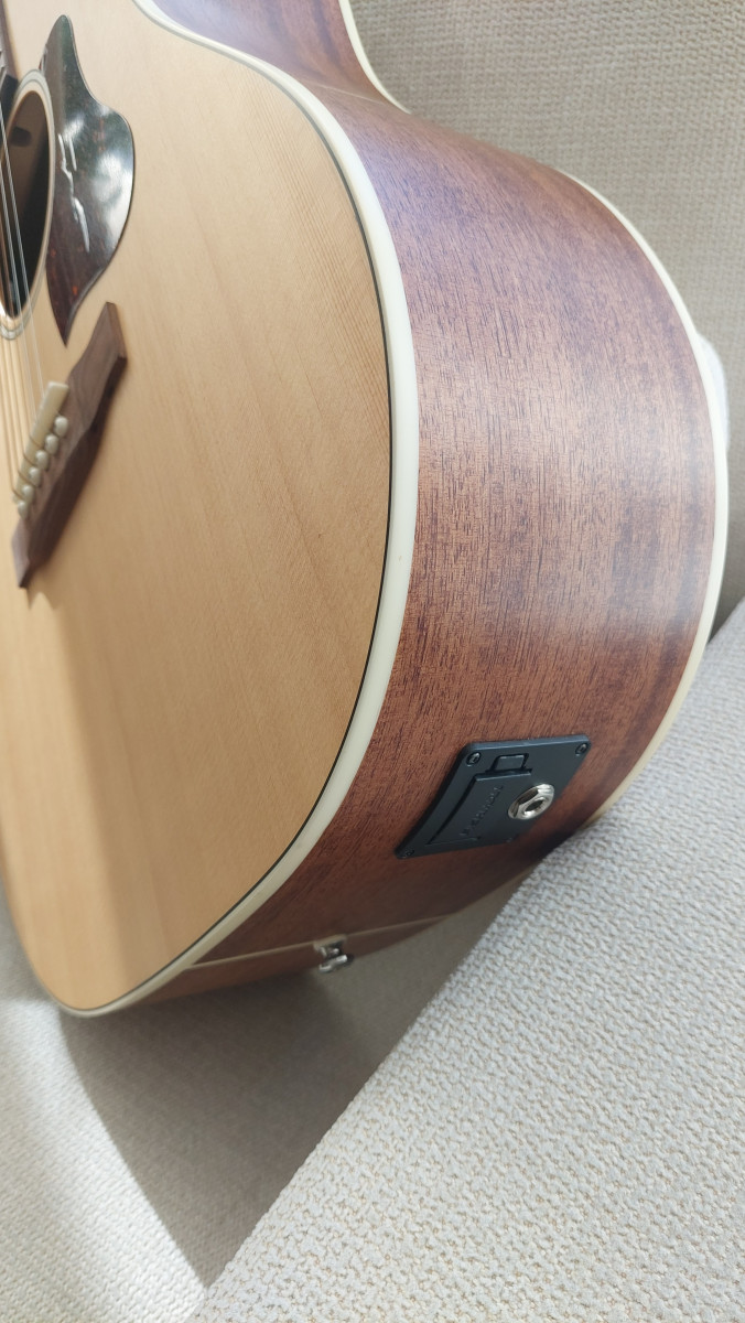 Acústica nueva, sin uso, con el plástico en el golpeador, una buena opción que necesitas una guitarra electroacústica para casa o escenario, una buena opción sin más.