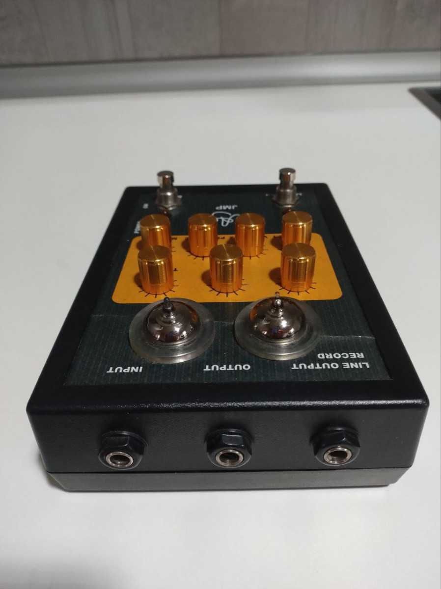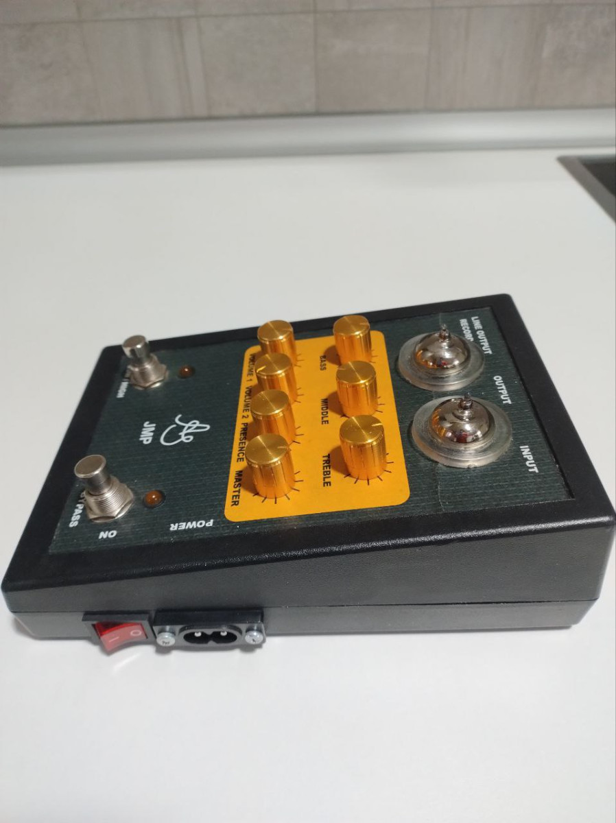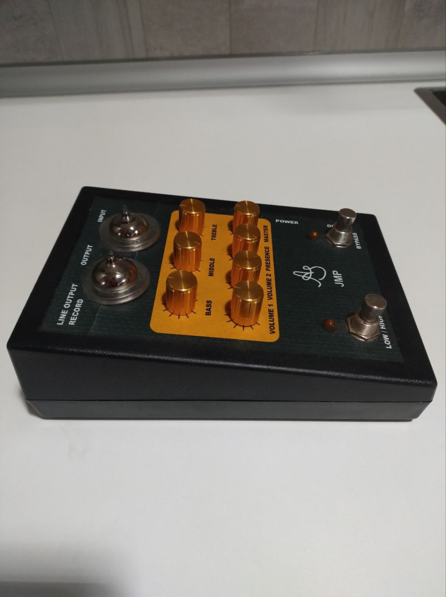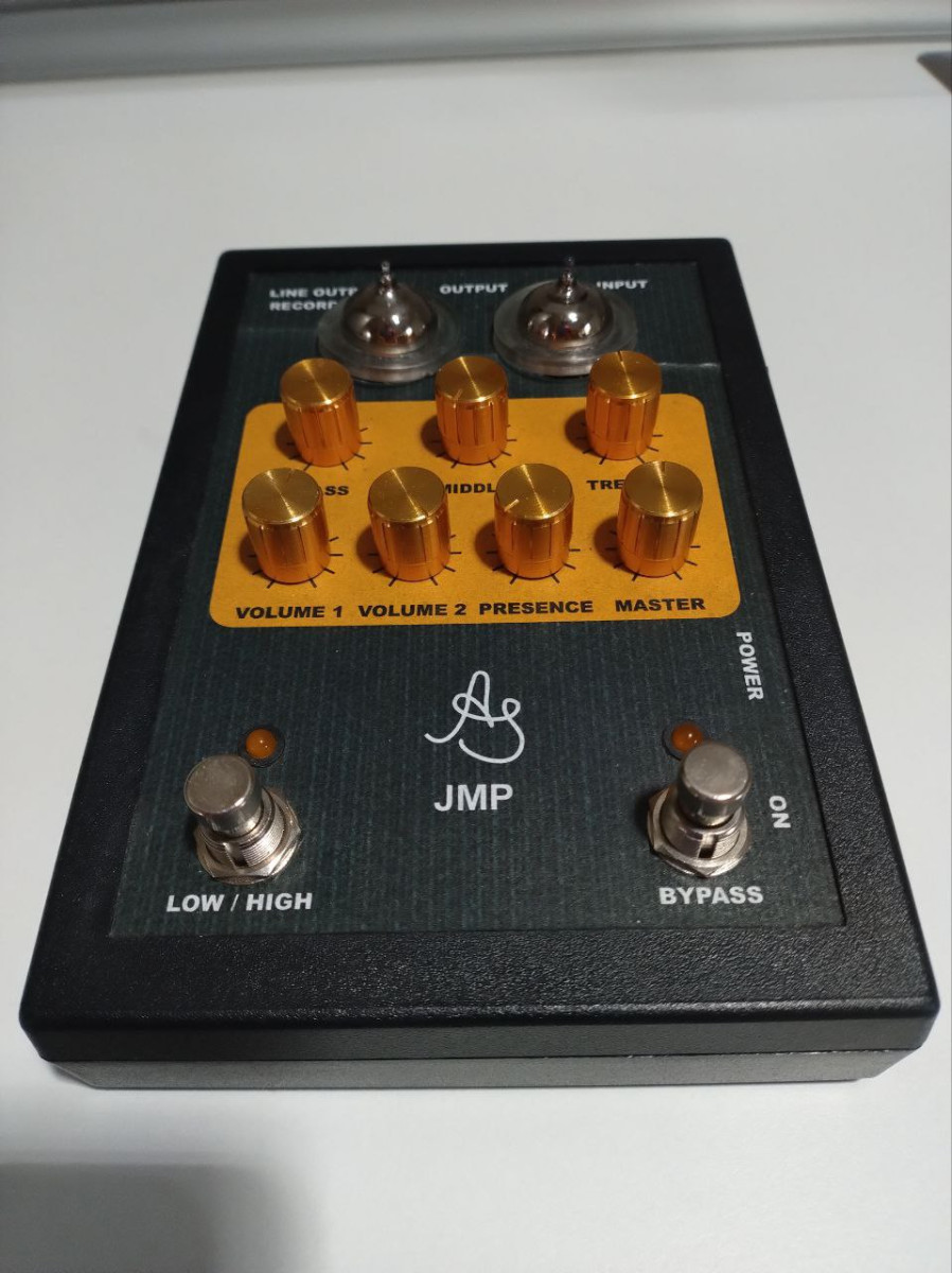 Pues no me ha quedado más remedio que sacar el último que me queda, el Previo A.S. JMP, construido a mano siguiendo los esquemas clásicos Marshall JMP. Simulación de altavoz,2 canales con sus volumenes, Presencia y Master, linkeados internamente. 2 válvulas ECC83 a alto voltaje (350V), condensadores WIMA, bypass y transformador toroidal de 230V. 100% analógico, bajo ruido y tono auténtico Marshall. Es tener el previo de un JMP en formato pedal. Muy difícil de conseguir, fabricados bajo rigurosa demanda. Poco uso y en perfecto estado, salvo las pegatinas (frontal/trasera) pasaría por nuevo.