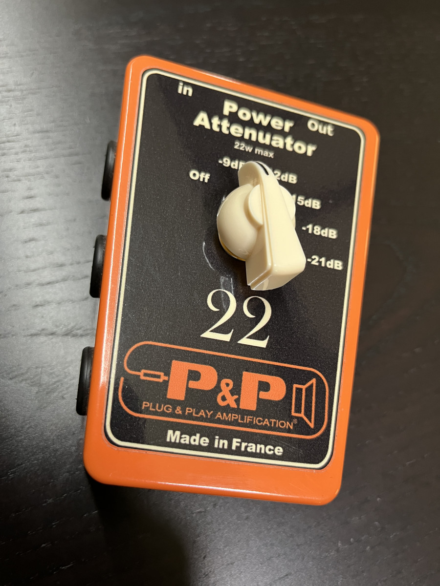 Atenuador de hasta 21dB para pequeños amplificadores de guitarra hasta 22 watts de poténcia y 8 Ohm de impedáncia.