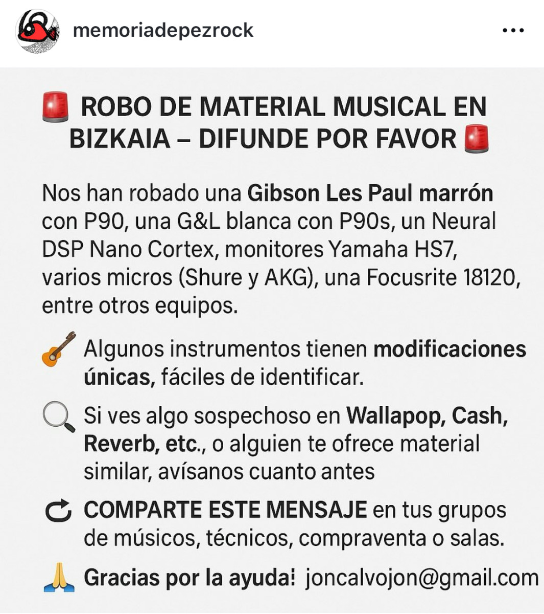 Les han robado estas guitarras y equipo a estos chavales de Bilbao,si alguien ve algo que avise,gracias.