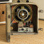 Rarisimo Bell & Howell FILMOSOUND; etapa de potencia de los años 40-50 para guitarra electrica (originalmente de proyector cine) con dos valvulas 6L6 B&H de la epoca, valvula rectificadora GZ34 y una valvula 65L7, alojado en su propia pantalla con cono de 12", en este caso un Celestion Vintage 30 nuevo.